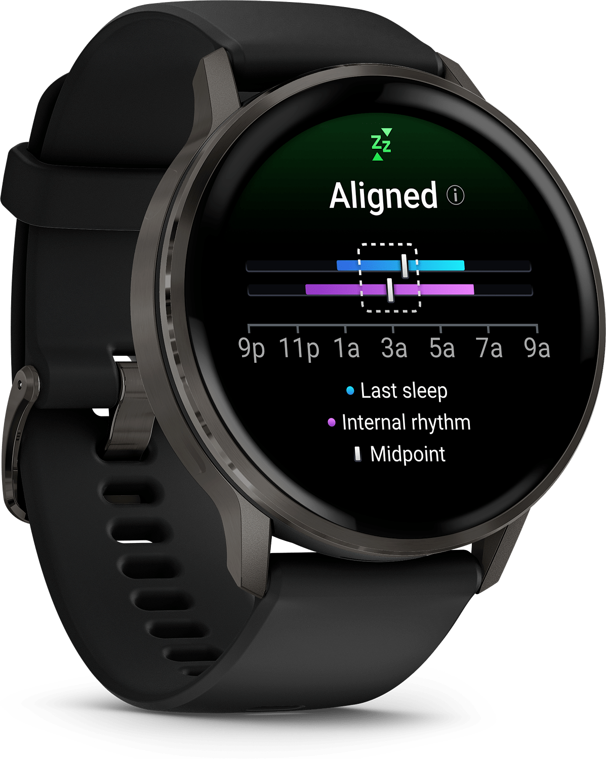 Saat unipisteet sekä henkilökohtaista valmennusta unentarpeestasi sekä vinkkejä unen parantamiseen. Voit seurata jopa unen vaiheita ja torkkujasi ja näet keskeiset mittaukset, kuten sykevälivaihtelun tila ja ihon lämpötila, jotta tiedostat terveydentilasi entistä paremmin. Unen kohdistumistoiminnolla näet vuorokausirytmisi tilan ja unesi säännöllisyyden.