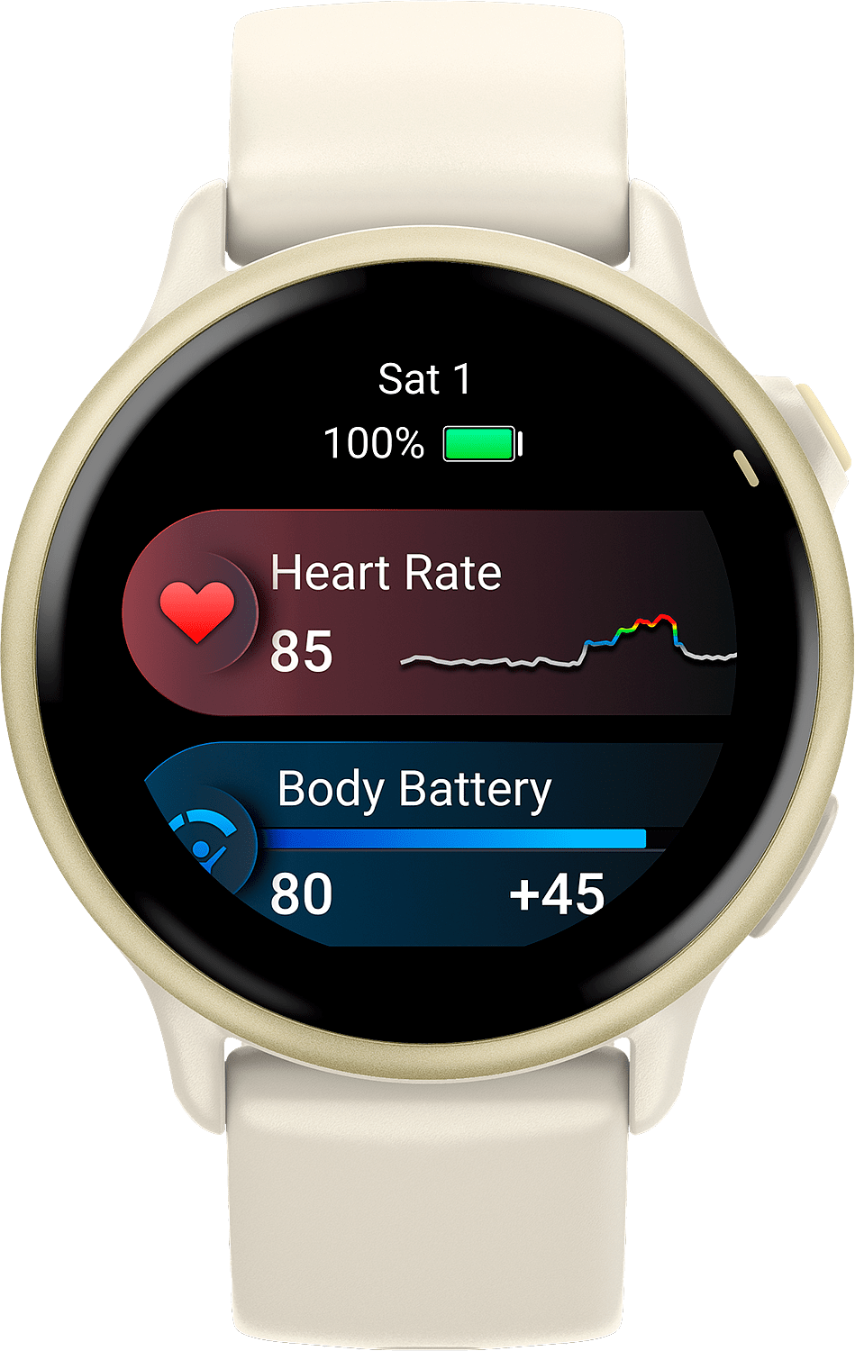 Garmin Vívoactive 6 -älykello tarjoaa laajoja terveydentilan seurantaominaisuuksia, kuten rannesykemittauksen, aamuraportin, kuntoiän, stressin seurannan, kuukautisten ja raskauden seurannan sekä meditoinnin. Automaattinen torkkujen tunnistus seuraa torkkujesi pituutta päivän aikana ja antaa tietoja siitä, miten torkut vaikuttavat esimerkiksi Body Battery -energianseurantaan.