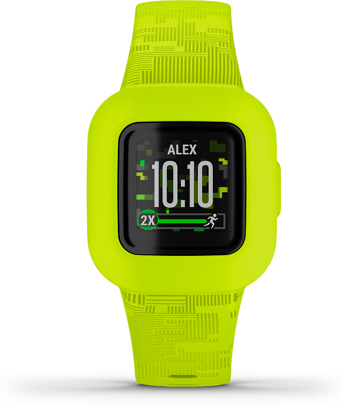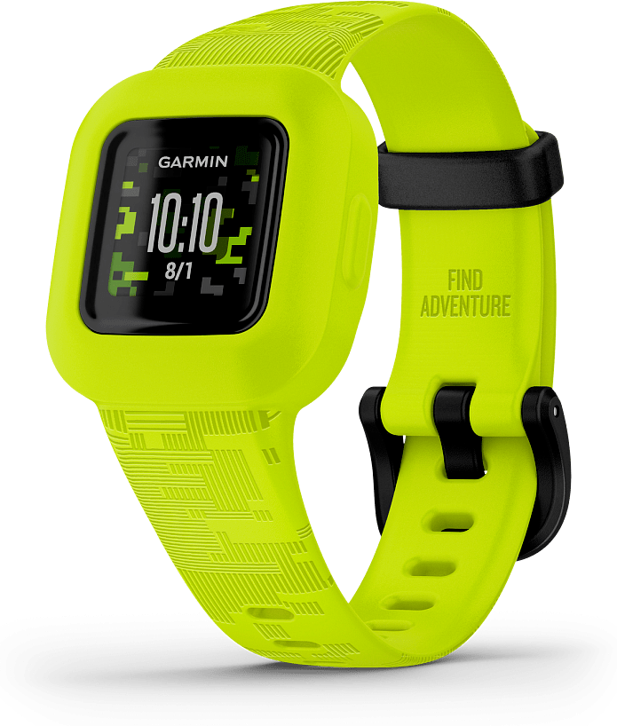 Lapset pääsevät tutustumaan maailman ihmeisiin Garmin Vivofit jr. 3 -aktiivisuusranneketta käyttäessään. Kestävässä laitteessa on uintiin soveltuva värinäyttö, useita kellotauluvaihtoehtoja sekä jopa 1 vuoden kestävä vaihdettava paristo.