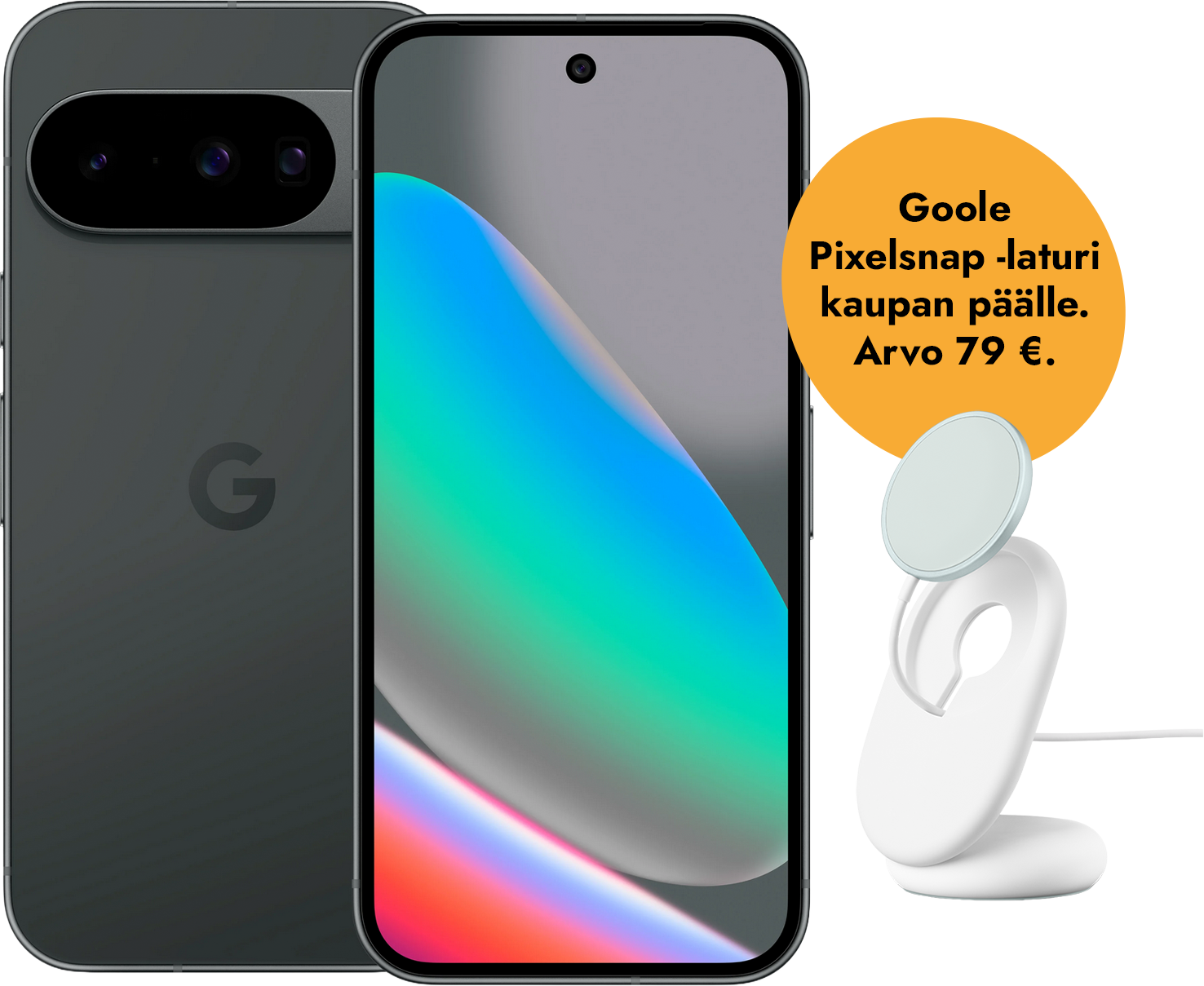 Lataa langattomasti napsahduksella Pixel 10 ‑puhelimissa on Pixelsnap-magneettiteknologia, jonka avulla langattomat laturit napsahtavat kätevästi paikalleen tarjoten tehokkaampaa latausta.