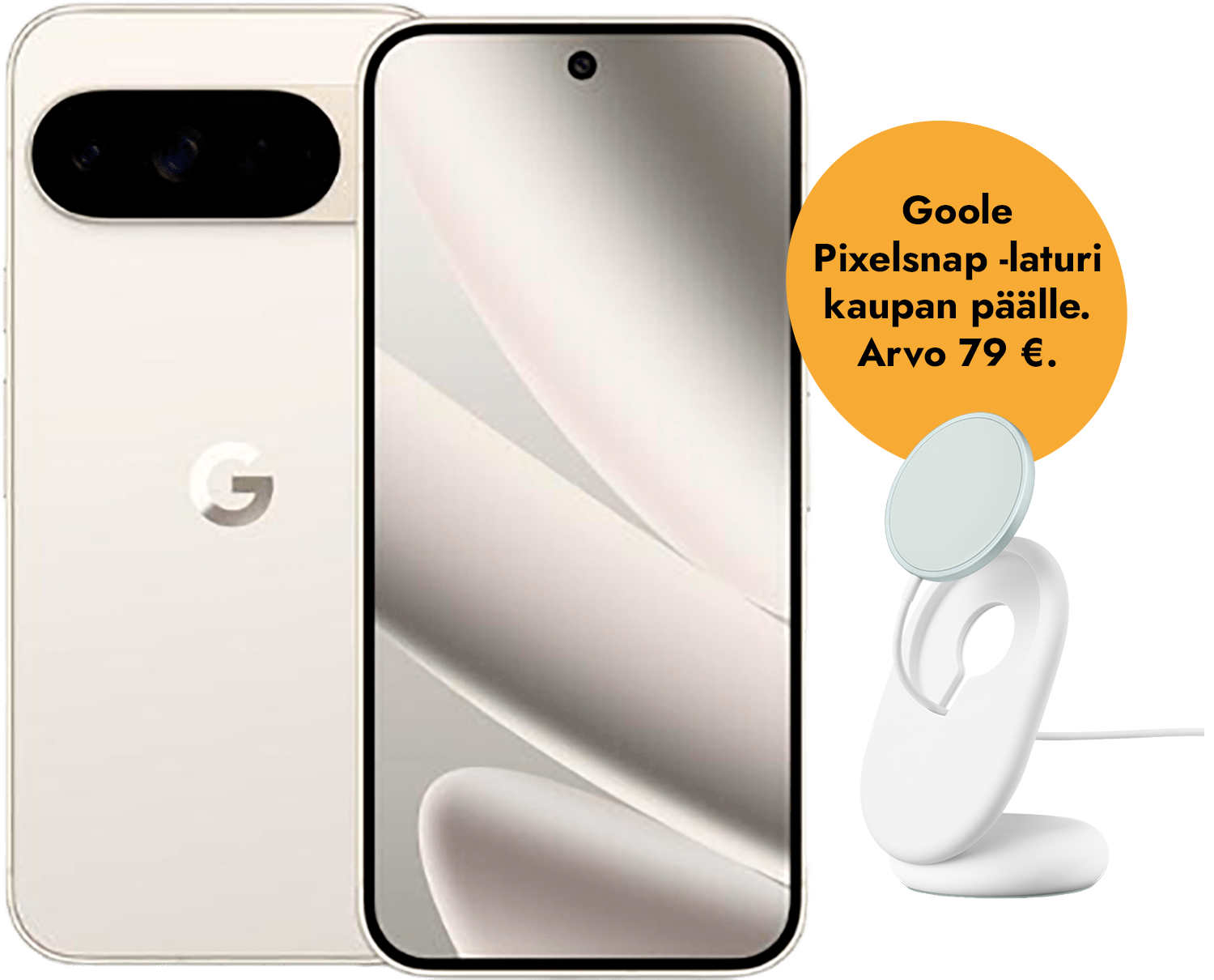 Ostaessasi Pixel 10 Pro XL -puhelimen 30.3.-19.4.2026 välisenä kampanja-aikana, saat Google Pixelsnap -laturin kaupan päälle. Edun arvo 79 €!