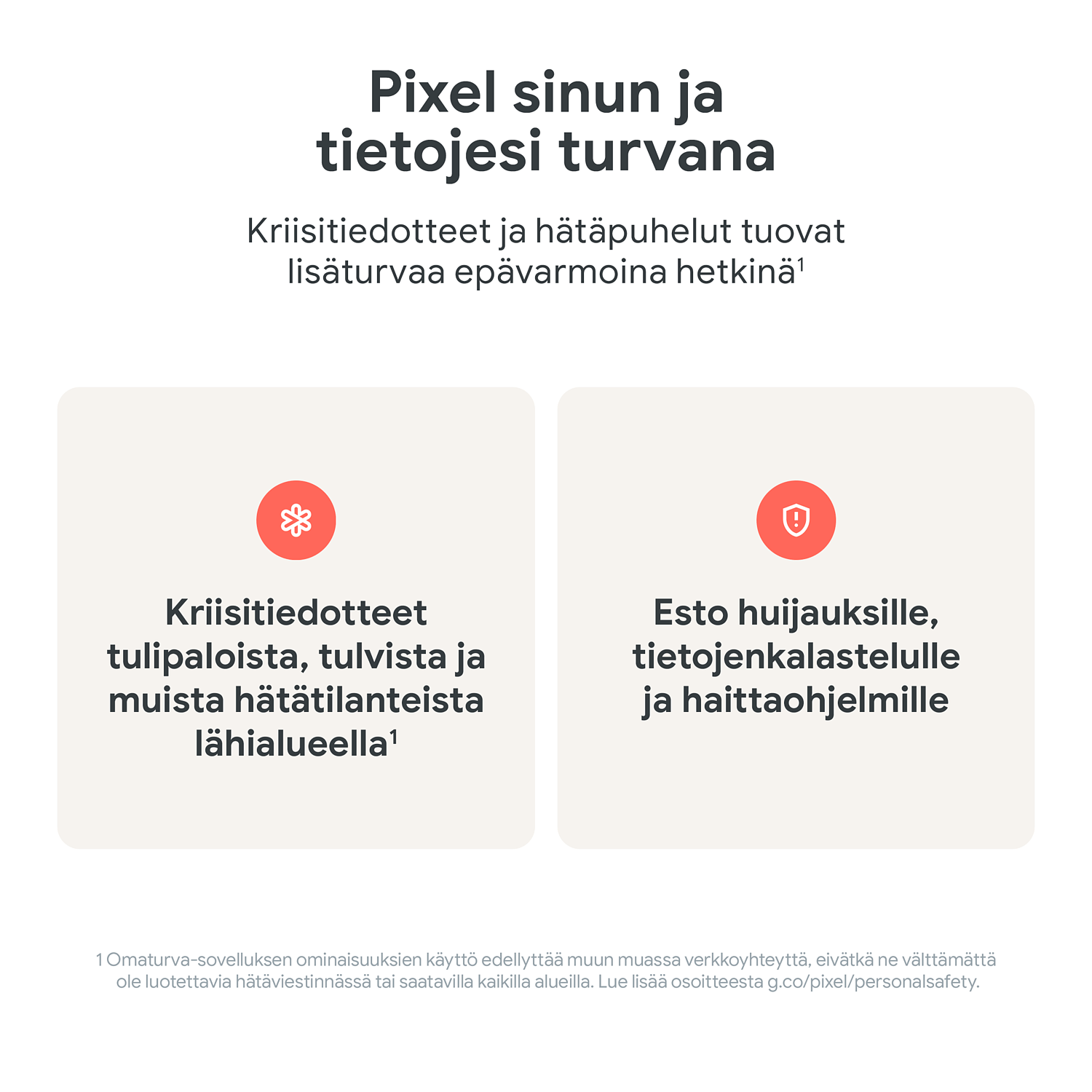 Jos olet hätätilanteessa, paina virtapainiketta viisi kertaa. Pixel voi soittaa puolestasi hätäkeskukseen ja jakaa sijaintisi yhteyshenkilöillesi.