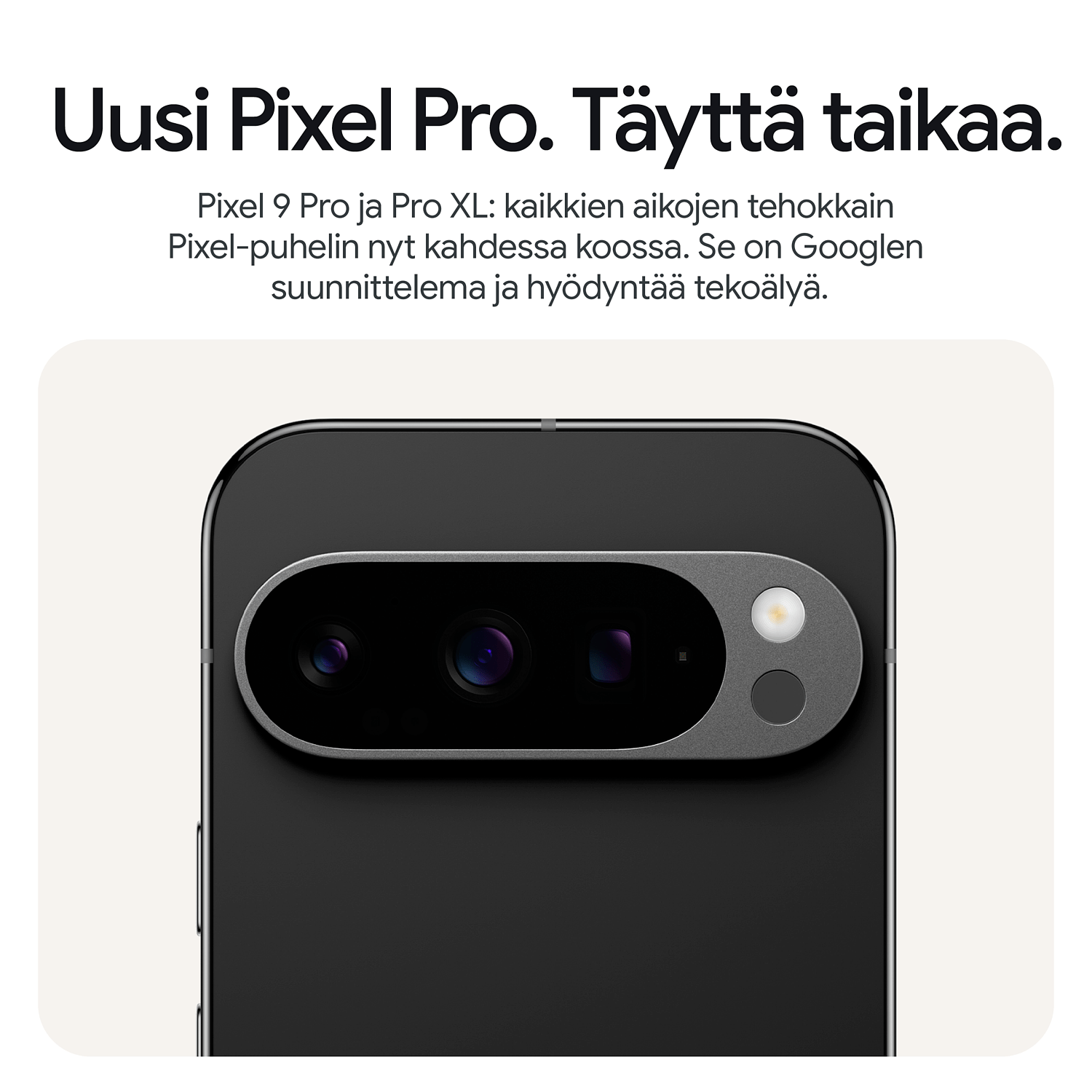 Geminillä varustettu Pixel 9 Pro on kaikkien aikojen tehokkain Pixel-puhelin. Voit ottaa huipputason kuvia ja videoita kolmoiskamerajärjestelmän ansiosta ja muokata niitä helposti. Puhelin on Googlen suunnittelema, joten sen käyttäjät saavat Googlen parhaan tekoälyteknologian käyttöönsä ennen muita.