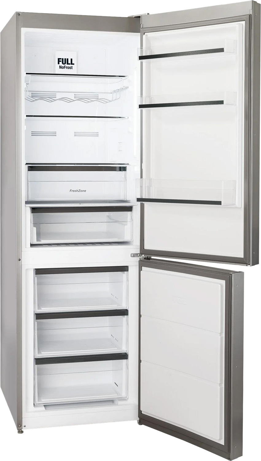 KF 581865 FNX on erittäin laadukas, klassinen ja tyylipuhdas teräksinen jääkaappipakastin. Täysin suora ovi ja teräksen väriset pitkät L-malliset metallikahvat ovat erittäin kestävät ja tyylikkäät. Tämä jääkaappipakastin tarjoaa runsaasti ominaisuuksia, jotka auttavat sinua ruoan säilytyksessä ja vähentävät ruokahävikkiä.