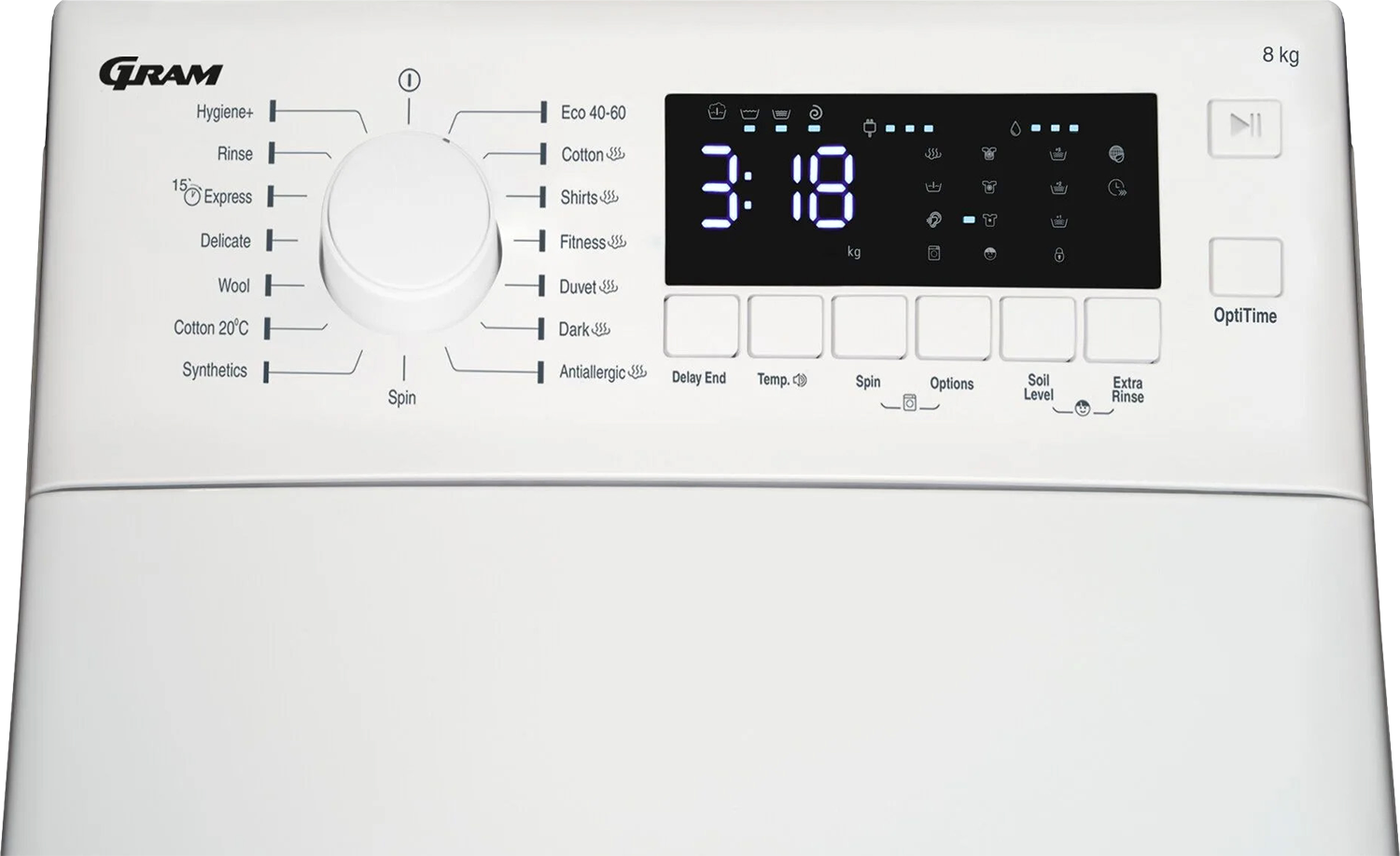 Tutustu Gram WTL 21813-90 päältä täytettävään pyykinpesukoneeseen, jossa on vaikuttava 8 kg:n pesukapasiteetti ja A-energialuokka. Tämä pyykinpesukone tarjoaa useita käytännöllisiä toimintoja, jotka tekevät siitä täydellisen ratkaisun pesutarpeisiisi.