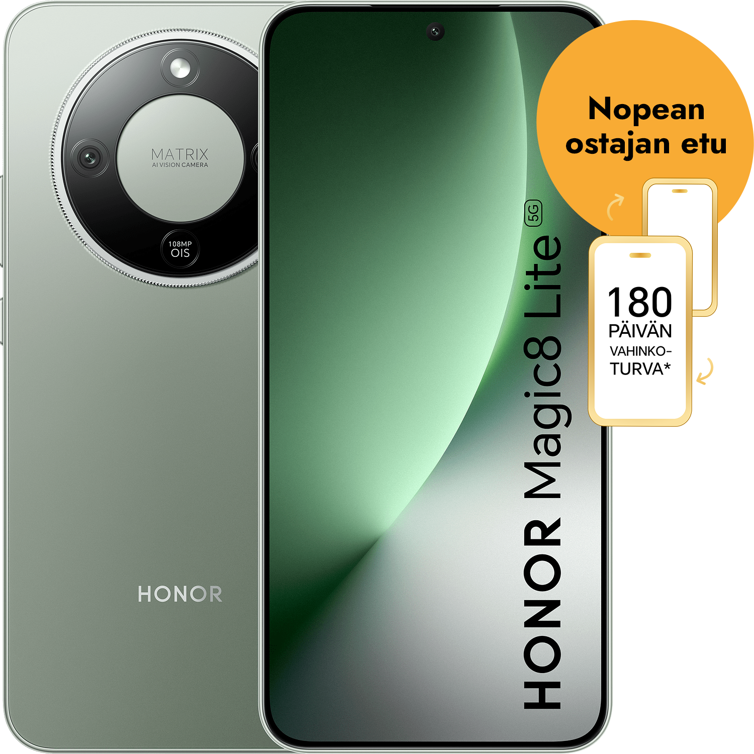 Ostaessasi HONOR Magic8 Lite -älypuhelimen 19.1.–1.3.2026 välisenä kampanja-aikana, saat nopean ostajan etuna 6 kuukauden vahinkoturvan kaupan päälle.