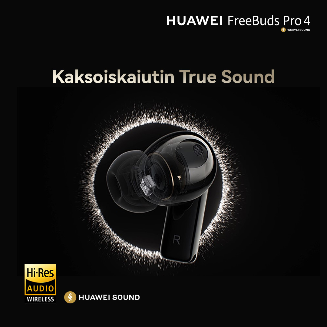 HUAWEI FreeBuds Pro 4 -nappikuulokkeet tarjoavat huippuluokan äänenlaadun ja tehokkaan melunvaimennuksen. Niissä on ultra-äänen kaksikaiutinelementit ja digitaalinen jakosuodatin, jotka takaavat häviöttömän äänenlaadun. Kuulokkeissa on feedforward (FF) ja feedback (FB) -mikrofonit aktiivista hybridivastamelua varten, ja ne käyttävät kahdenlaisia korvakärkiä (Shape-Memory Foam ja silikonikorvatulpat) parantaakseen melunvaimennustehoa. Kolmen mikrofonin järjestelmä, Voice Pick-Up (VPU) -luuanturi ja syviin neuroverkkoihin perustuvat algoritmit varmistavat kristallinkirkkaat äänipuhelut. Lisäksi kuulokkeet tukevat Awareness-tilaa ja HD-tallennusta.