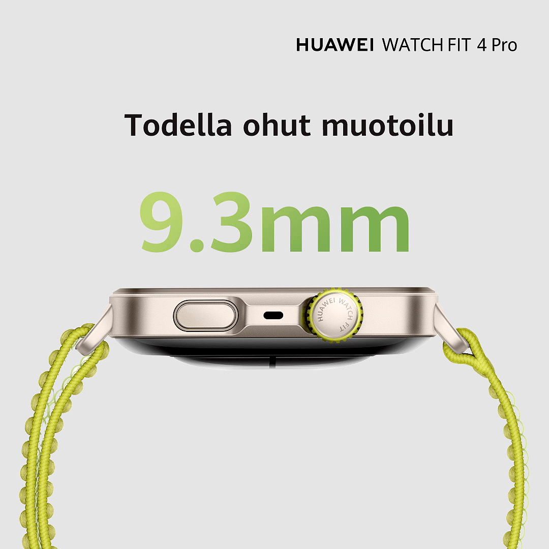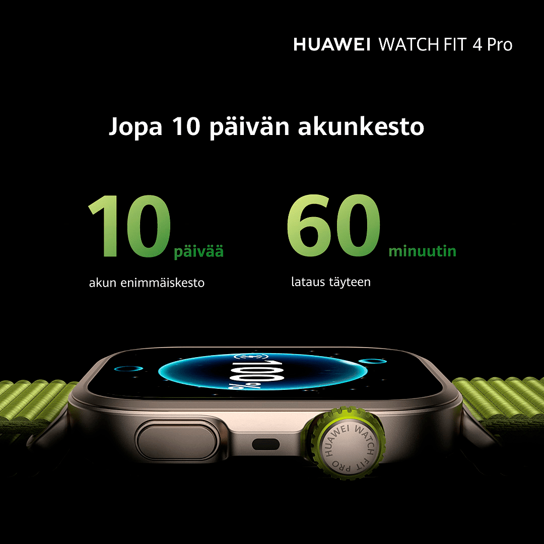 Huawei Watch FIT 4 Pro tarjoaa kestävästä safiirilasista ja titaanista valmistetun todella ohuen 9,3 mm paksuuden ja vain 30 gramman painon. Se on varustettu edistyneillä urheilutiloilla, kuten golfilla ja jopa 40 metrin vapaasukelluksen seurannalla, kattavilla terveydenseurannan ominaisuuksilla ja jopa 10 päivän akunkestolla. Älykkäät ilmoitukset ja saumaton yhteensopivuus sekä iOS- että Android-laitteiden kanssa tekevät siitä täydellisen kumppanin aktiiviseen elämäntyyliin.
