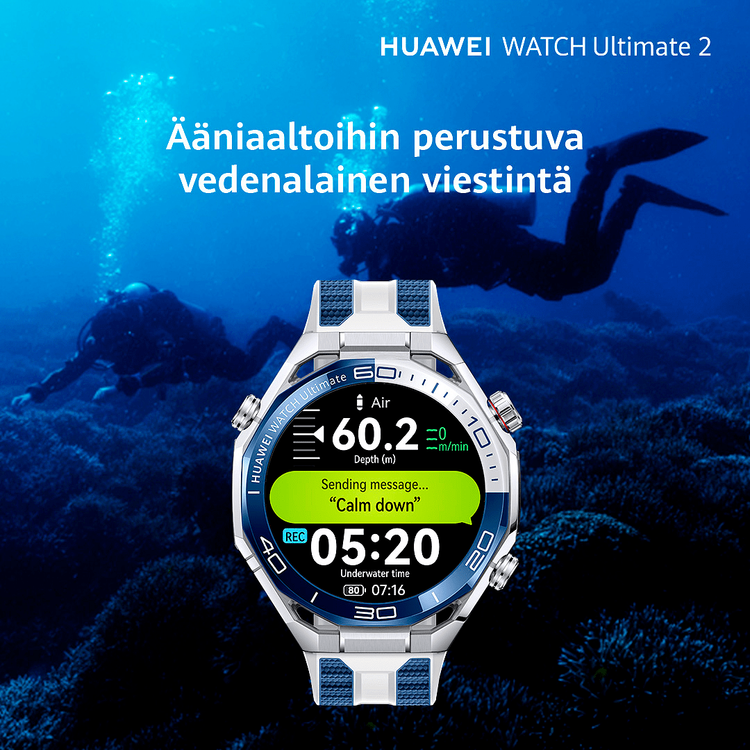Huawei Watch Ultimate 2 on huippuluokan älykello, jossa yhdistyvät ylellinen muotoilu, erinomainen kestävyys ja edistyksellinen teknologia. Se on suunniteltu niille, jotka vaativat laitteeltaan enemmän - sukeltajille, urheilijoille, seikkailijoille ja aktiivisille ammattilaisille. Tämä kello mukautuu saumattomasti kaikkiin tilanteisiin - olitpa sitten merenpinnan alla, vuorenhuipulla tai työpöydän ääressä.