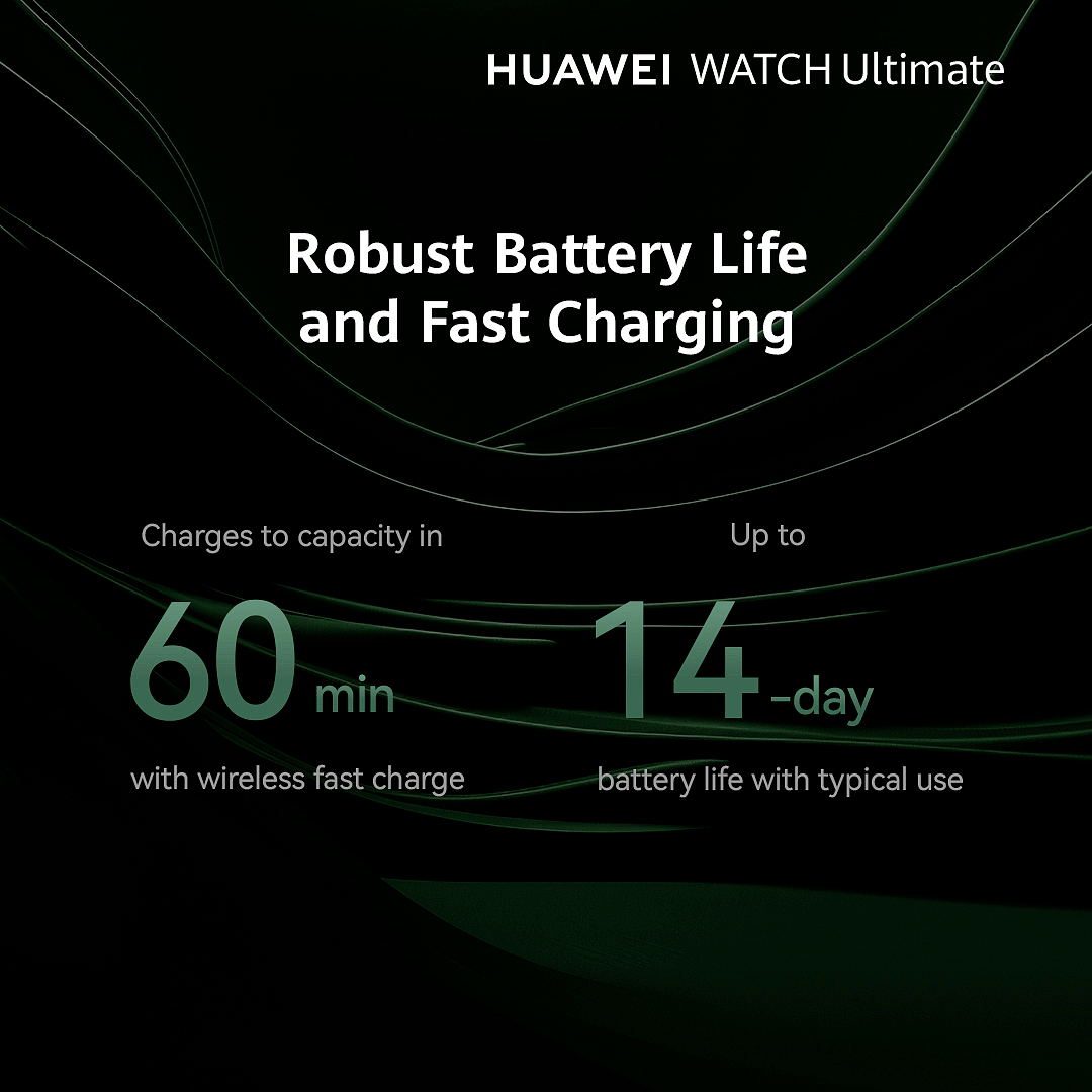 Huawei Watch Ultimate Freeway Green on suunniteltu kestämään äärimmäisimmät olosuhteet. Kellossa on kiiltävä zirkonium -pohjaisesta nestemäisestä metallista valmistettu runko, joka tekee siitä entistäkin kestävämmän. Tämä sukeltajankello on suunniteltu kestämään sukelluksen jopa 100 metrin syvyyteen, ja sillä on 10ATM-luokitus. Sukellustiloja ovat esimerkiksi vapaasukellus, tekninen sukellus ja laitesukellus, ja ne on varustettu kätevillä sukellustyökaluilla.
