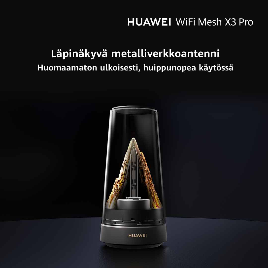 HUAWEI WiFi Mesh X3 Pro asettaa uuden standardin reitittimien muotoilulle yhdistämällä luonnosta inspiroituneen estetiikan ja huipputason teknologian. ''Golden Mountain Glow'' - ilmiöstä inspiraationsa saanut laite erottuu läpinäkyvällä akryylirungollaan, kolmiulotteisilla vuoritekstuureilla ja dynaamisilla valaistusefekteillä, jotka jäljittelevät auringonnousua ja lumisadetta. Reititin toimii kodin näyttävänä katseenvangitsijana, aivan kuin taideteos.