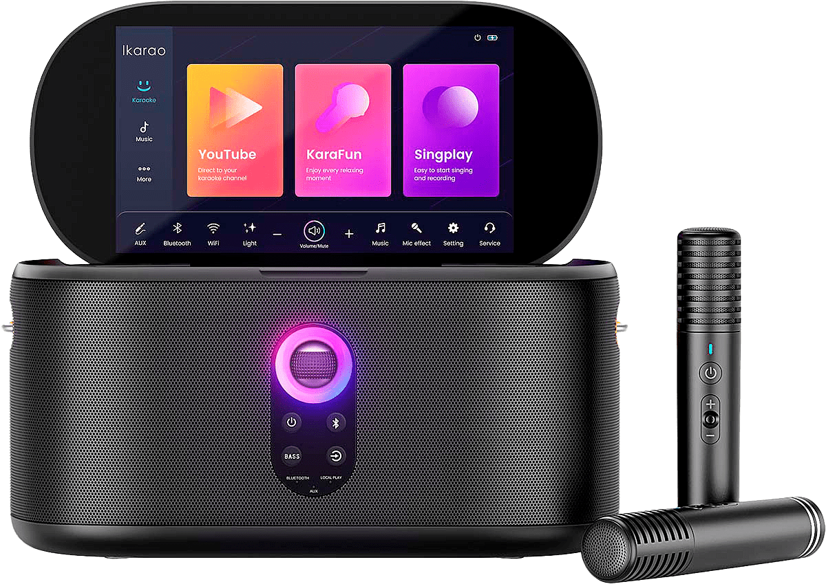Unohda tylsät illat - iKarao Shell S1 karaoke laite tuo juhlat suoraan olohuoneeseesi. 300 watin teho takaa, että naapuritkin tietävät, kuka on illan tähti (halusivatpa tai eivät). Tämä all-in-one-karaokelaite sopii täydellisesti bileisiin, perhetapaamisiin tai siihen hetkeen, kun haluat laulaa kuin kukaan ei kuuntelisi - vaikka kaikki kuuntelevat.