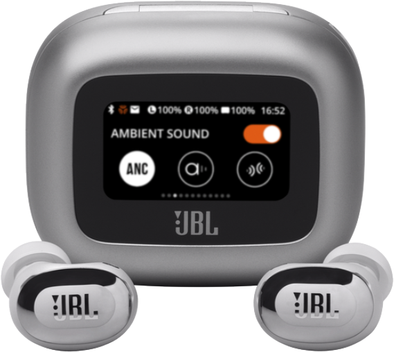 Smart Charging Case -latauskotelon 1,45 tuuman kosketusnäytöllä voit hallita JBL Live Buds 3 -kuulokkeiden kaikkia yksityiskohtia. Näytön avulla voit säätää ääntä täysin kaikilla laitteilla - kannettavalla tietokoneella, televisiolla, älypuhelimella tai tabletilla - ilman JBL-sovellusta.