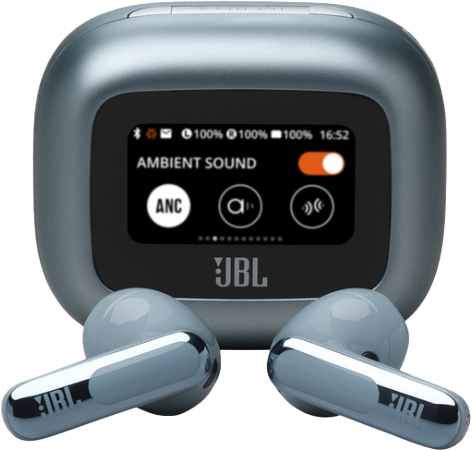 Smart Charging Case -latauskotelon 1,45 tuuman kosketusnäytöllä voit hallita JBL Live Buds 3 -kuulokkeiden kaikkia yksityiskohtia. Näytön avulla voit säätää ääntä täysin kaikilla laitteilla ? kannettavalla tietokoneella, televisiolla, älypuhelimella tai tabletilla ? ilman JBL-sovellusta.