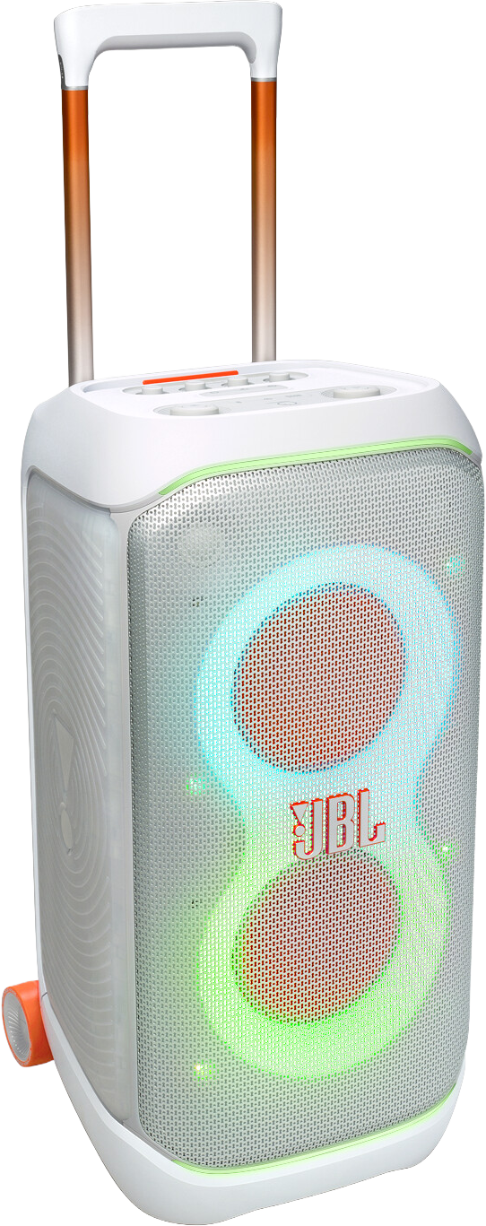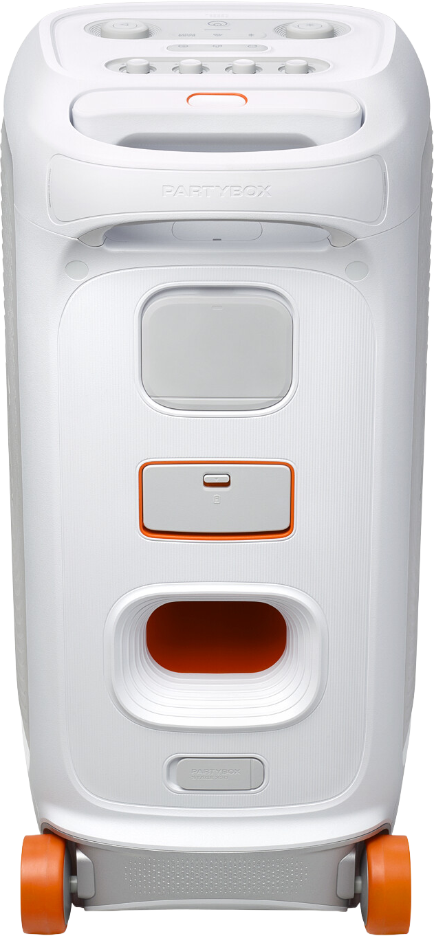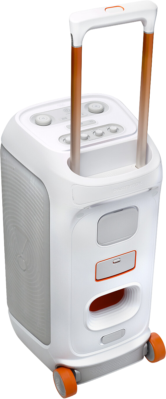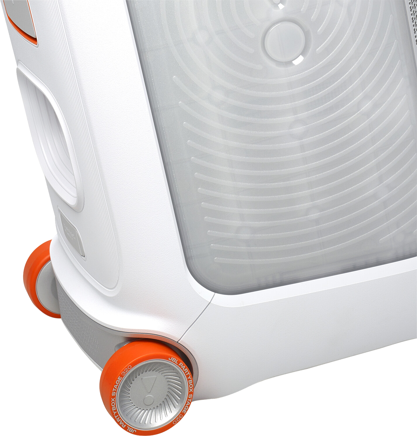 JBL PartyBox Stage 320 on varustettu teleskooppikahvalla sekä leveillä ja tukevilla pyörillä, joiden ansiosta raskaskin kaiutin kulkee helposti mukana. IPX4-roiskesuojattu rakenne kestää roiskeet ja kevyen sateen. Kaiutin tarjoaa jopa 18 tuntia soittoaikaa yhdellä latauksella, ja juhlia voidaan jatkaa vaihtamalla akku. EasySing-mikrofonien jopa 10 tunnin akunkesto varmistaa, että laulu jatkuu koko illan.