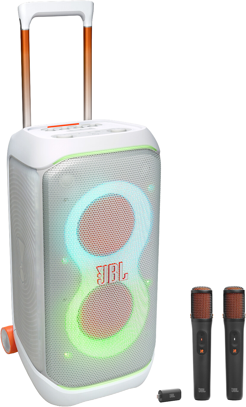 JBL PartyBox Stage 320 on kannettava bilekaiutin, joka on suunniteltu suuriin juhliin, tapahtumiin ja tilaisuuksiin, joissa vaaditaan erityisen voimakasta ääntä ja näyttävää kokonaisuutta. Tämä paketti sisältää kaiuttimen lisäksi kaksi langatonta JBL EasySing -mikrofonia, joten karaoke ja esiintyminen onnistuvat heti ilman lisähankintoja. Voimakas JBL Pro Sound täyttää laajan tilan jykevällä bassolla ja kirkkailla ylä-äänillä niin sisällä kuin ulkona.