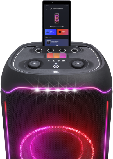JBL One -sovelluksen avulla voit hallita musiikkiasi, säätää taajuuskorjaimen asetuksia sekä muokata valoshown värejä ja kuvioita helposti - luoden täydellisen bilefiiliksen.