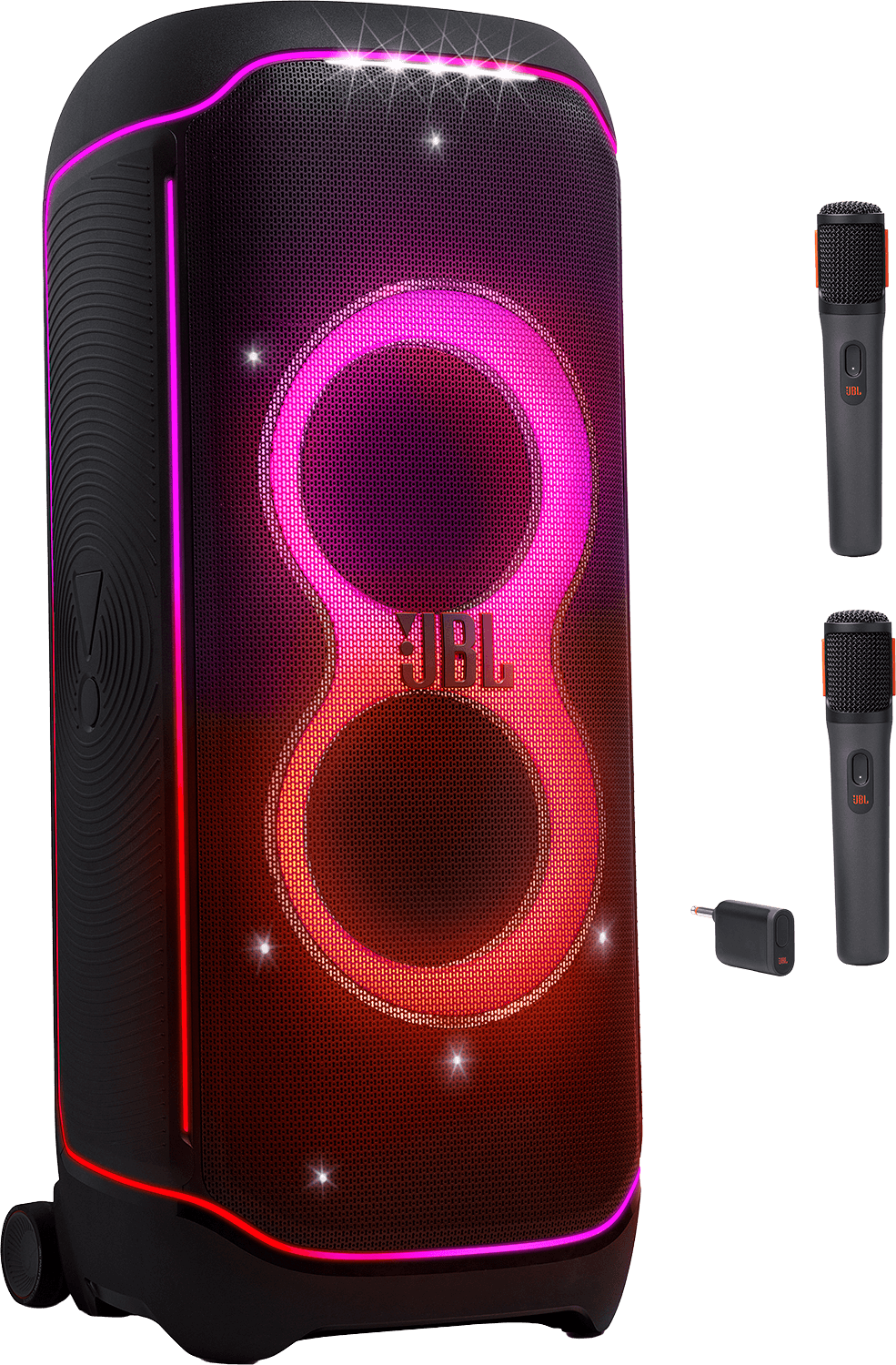 Haluatko vieläkin voimakkaamman JBL Pro Sound -äänen? Voit yhdistää kaksi kaiutinta stereopariksi laajemman äänimaiseman luomiseksi. Suurimpia tapahtumia varten voit liittää langattomasti useita PartyBox-kaiuttimia.