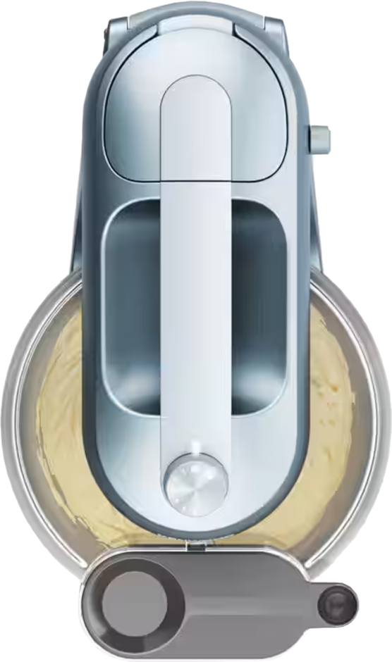 Neljä litran sekoituskulhossa valmistuvat taikinat niin makeisiin kuin suolaisiin herkkuihin. Kolmen kulhotyökalun avulla pizzat ja leivonnaiset syntyvät helposti, kun tehokas ja kestävä 800 W moottori hoitaa taikinoiden työstämisen. Innovatiivinen, integroidulla mittalusikalla ja tilavalla syöttöaukolla varustettu pyörivä roiskesuoja helpottaa ainesten lisäämistä kulhoon leivonnan aikana.