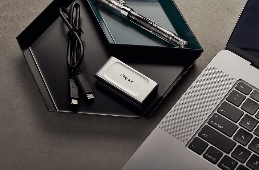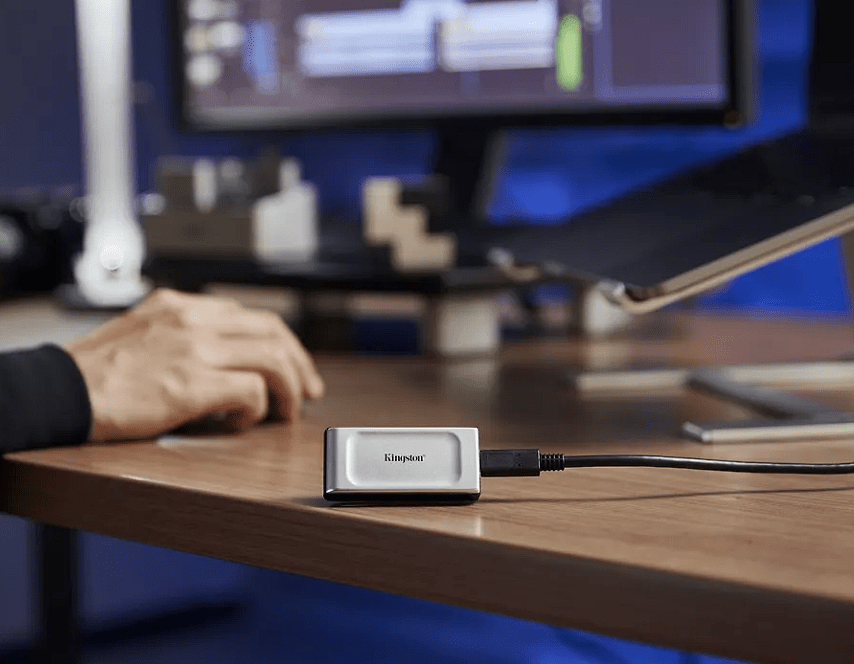 Kingstonin kannettava XS2000 SSD -ulkoinen kovalevy käyttää USB 3.2 Gen 2x2 -nopeuksia uuden sukupolven suorituskyvyn tuottamiseksi pienenä ulkoisena yksikkönä. XS2000 lisää tuottavuutta keskeytyksettä salamannopeilla tiedonsiirtonopeuksillaan (jopa 2 000 Mt/s). XS2000 tarjoaa suurnopeuksisia, jopa neljän teratavun tallennusmahdollisuuksia korkearesoluutioisten kuvien, 8K-videoiden ja suurikokoisten tiedostojen viemiseksi ja muokkaamiseksi flashmuistissa.