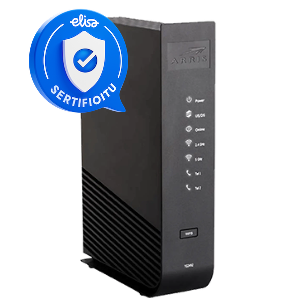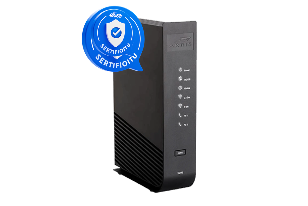 EuroDOCSIS 3.0 yhteensopiva kaapelimodeemi WiFi 5 -tukiasemalla, jolla jaat internetyhteyden helposti kotiverkkosi laitteille langattomasti ja langallisesti.