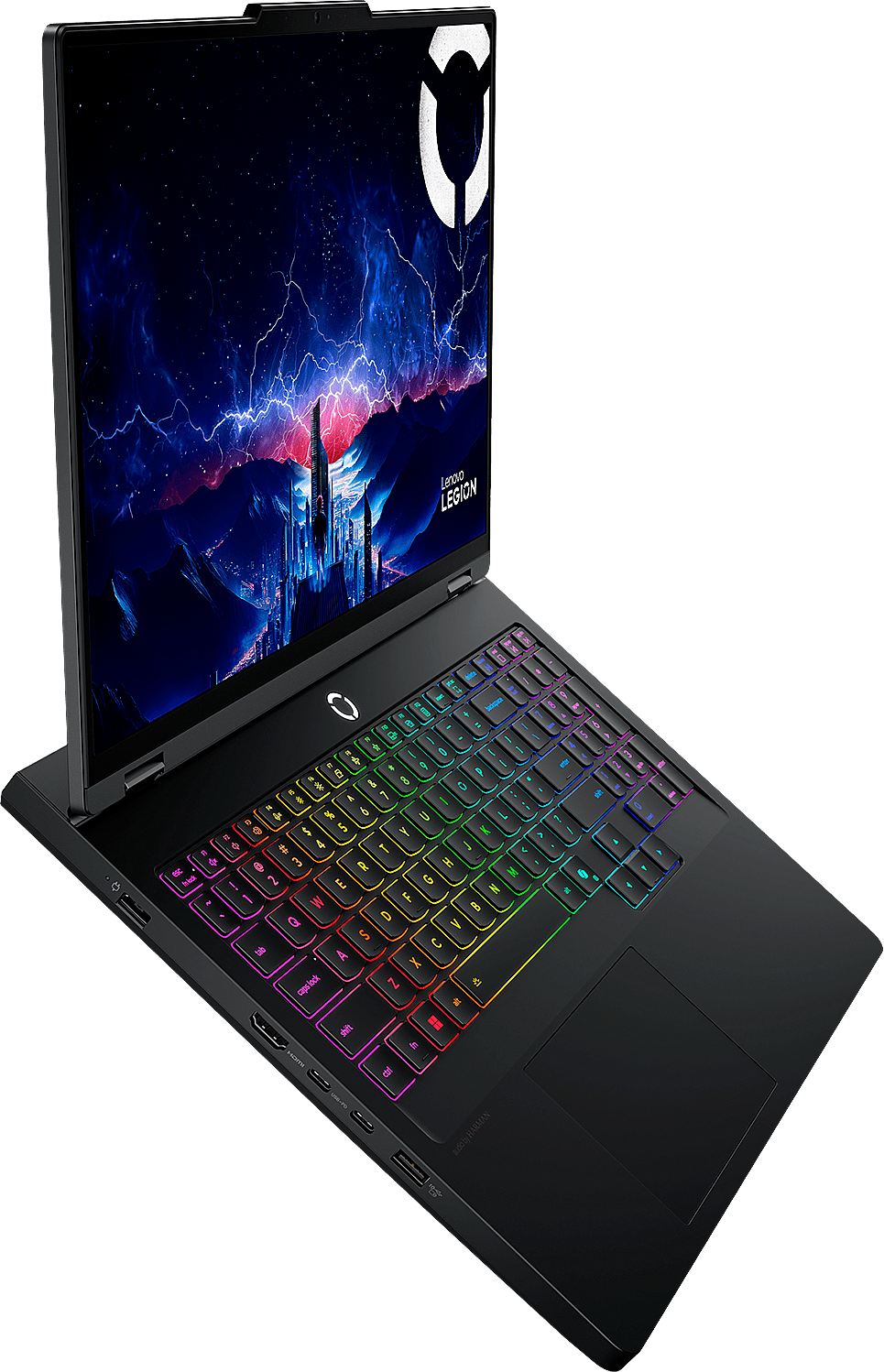 Legion Pro 5i on rakennettu kestämään - sen alumiinirunko, Eclipse Black -viimeistely ja tekoälysynkronoitu RGB-näppäimistö tekevät siitä sekä tyylikkään että käytännöllisen. Suuret ilmanvaihtoaukot takaavat tehokkaan jäähdytyksen, ja monipuoliset liitännät, kuten HDMI 2.1, Ethernet ja eShutter-verkkokamera, tekevät siitä täydellisen vaihtoehdon pöytäkoneelle.
