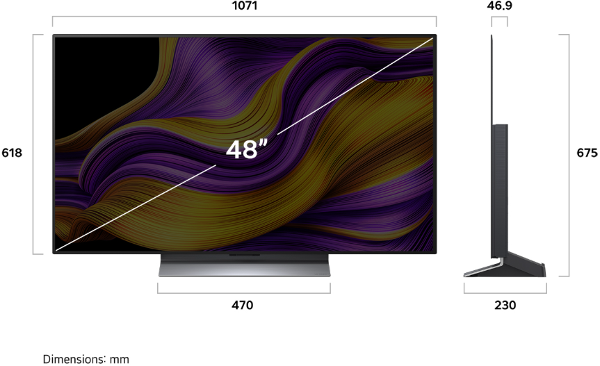TV:n mitat ilman jalustaa (LxKxS mm) 1 071 x 618 x 46,9