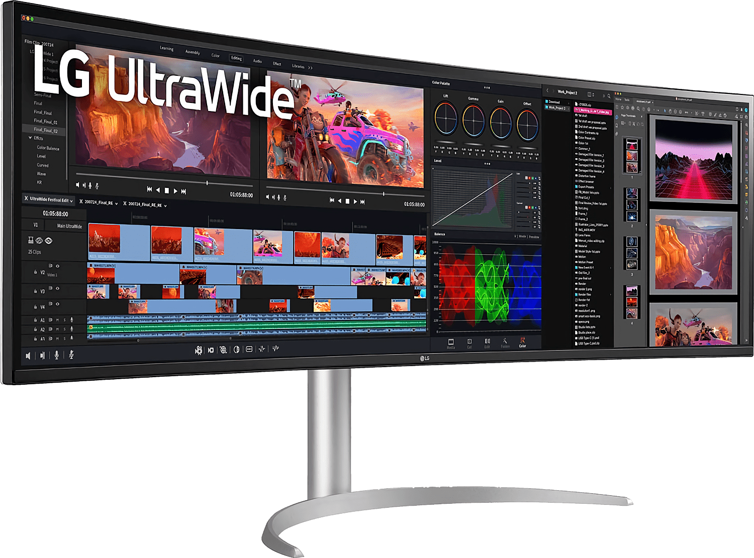 Tee enemmän kuin vain monta tehtävää yhtä aikaa. Tämä on UltraWide 32:9 Dual QHD (5 120 x 1 440) -näyttö, jossa on kaksinkertaistettu 27 tuuman 16:9 QHD-pikseliavaruus yhdellä näytöllä. Siinä on 70 % enemmän pikseleitä verrattuna 32:9 FHD-tarkkuuteen (3840 x 1080). Pääset moniformaatti-multipleksauksella pitemmälle kuin vain monen tehtävän tekeminen yhtä aikaa.