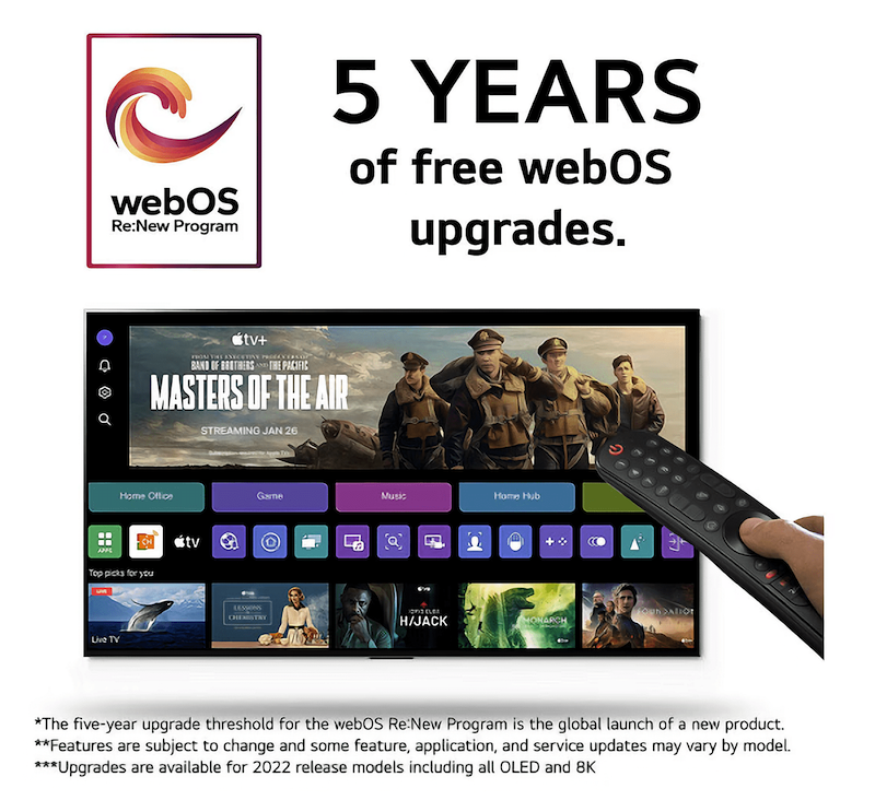 Pysy ajan tasalla kätevien ominaisuuksien ja teknologioiden kanssa neljällä taatulla webOS-päivityksellä seuraavan 5 vuoden aikana.