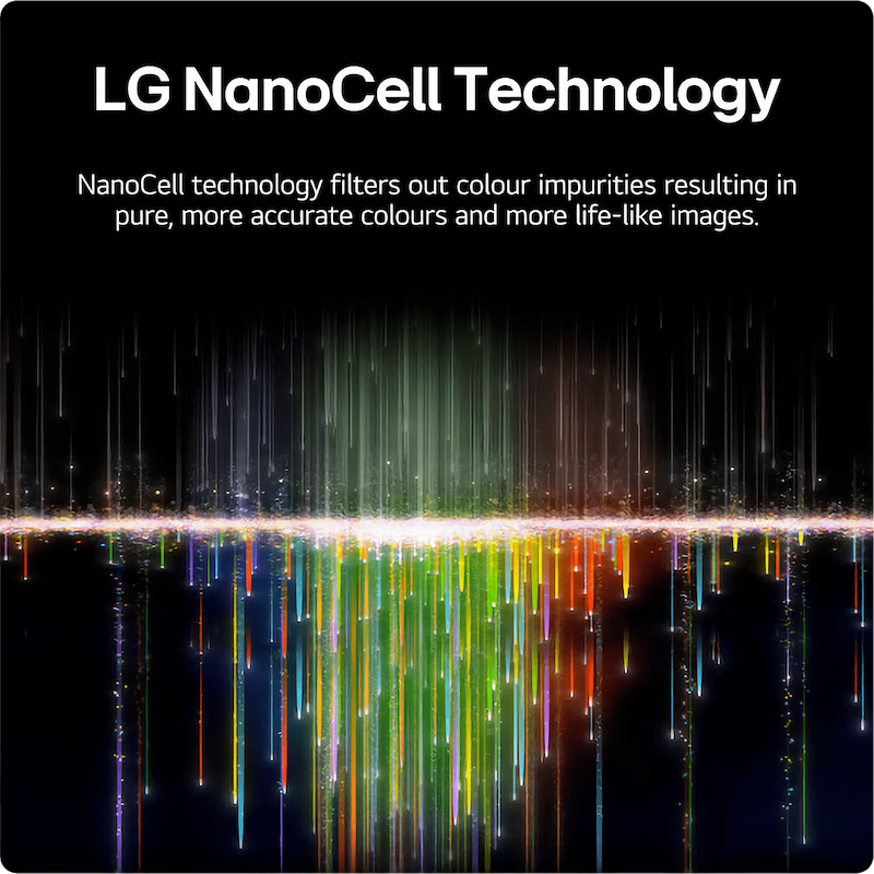 LG NANO81T -televisio hyödyntää NanoCell-väriteknologiaa, joka toistaa sisällön tarkemmin ja eloisammin kuin perinteiset LED-televisiot. NanoCell-teknologian ansiosta värit ovat tarkempia, ja eroavaisuudet sävyissä ja värispektrissä ovat hienovaraisempia. Televisiossa on myös älykäs prosessori, joka parantaa katselukokemusta ja äänenlaatua. Elokuvafanit arvostavat Filmmaker-tilaa, joka tarjoaa aitoa ja elokuvamaisempaa kuvaa. Lisäksi LG:n webOS-älyalusta ja intuitiivinen Magic Remote -kaukosäädin tekevät televisiosta monipuolisen viihdekeskuksen, josta löydät helposti suosikkisovelluksesi kuten Elisa Viihde, Netflix, Prime Video, Disney+ ja Twitch.
