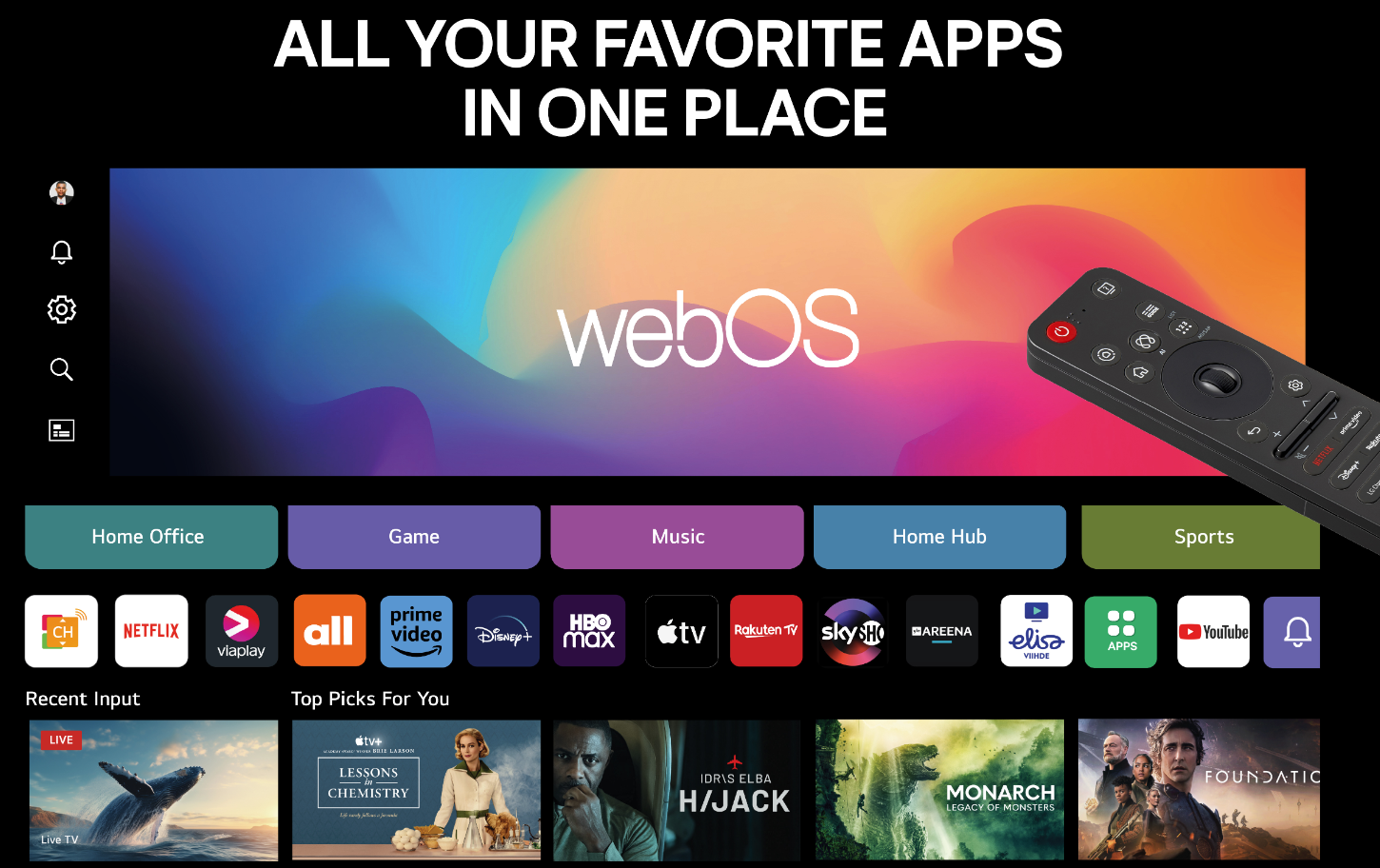Magic Remote tekee television käytöstä nopeaa ja helppoa. Point & Click -toiminto, äänikomennot ja eleentunnistus mahdollistavat sujuvan hallinnan, ja mukautettavat pikavalinnat tekevät käyttökokemuksesta henkilökohtaisen.