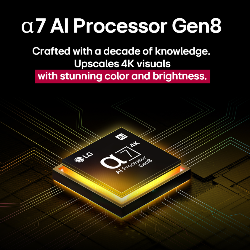 Uusimman sukupolven α7 AI -prosessori tuo entistä parempaa suorituskykyä myös keskihintaisiin malleihin. Verrattuna aiempaan α5-prosessoriin, se tarjoaa 30 % enemmän laskentatehoa ja 110 % paremman grafiikkasuorituskyvyn. Tämä tarkoittaa sulavampaa kuvaa, nopeampaa reagointia ja parempaa skaalausta kaikenlaiseen sisältöön.