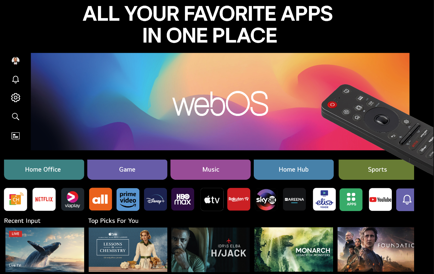 webOS tarjoaa selkeän ja helposti navigoitavan käyttöliittymän, joka mukautuu käyttäjän mieltymyksiin. Jopa 10 käyttäjäprofiilia mahdollistaa henkilökohtaisen katselukokemuksen jokaiselle perheenjäsenelle. webOS re:new -ominaisuus takaa järjestelmäpäivitykset viiden vuoden ajan, pitäen television ajan tasalla pitkään.
