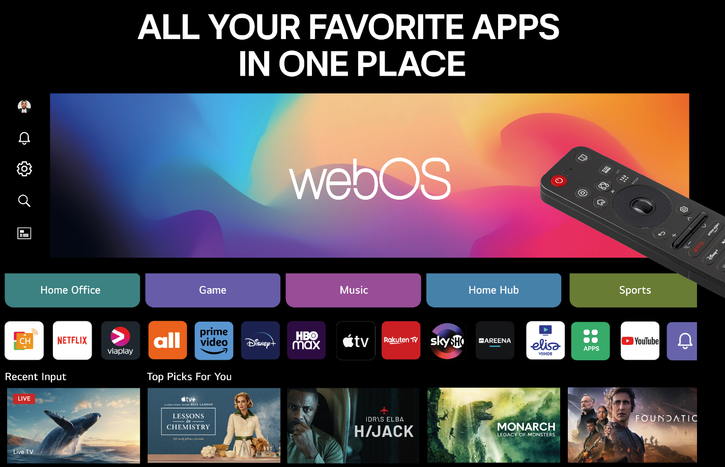 webOS tarjoaa selkeän ja käyttäjäystävällisen käyttöliittymän, joka mukautuu käyttäjän mieltymyksiin. Jopa 10 käyttäjäprofiilia mahdollistaa yksilöllisen katselukokemuksen koko perheelle. webOS re:new takaa järjestelmäpäivitykset viiden vuoden ajan.