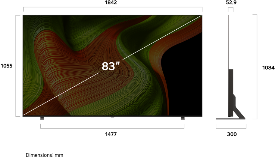 TV:n mitat ilman jalustaa (LxKxS mm) 1 842 x 1 055 x 52,9