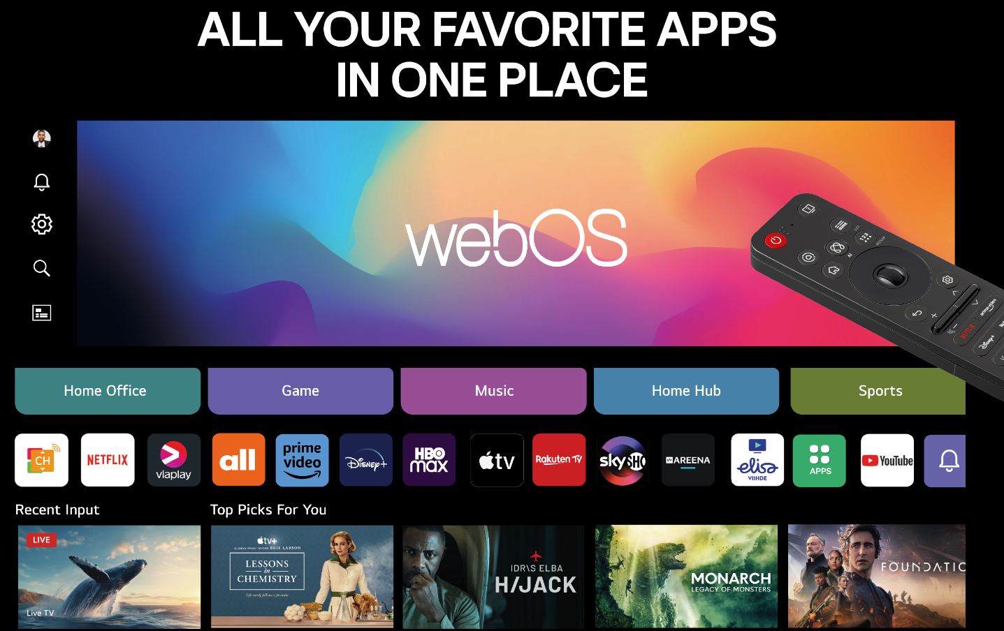 Magic Remote tekee television käytöstä nopeaa ja helppoa. Point & Click -toiminto, äänikomennot ja eleentunnistus mahdollistavat sujuvan hallinnan, ja mukautettavat pikavalinnat tekevät käyttökokemuksesta henkilökohtaisen.