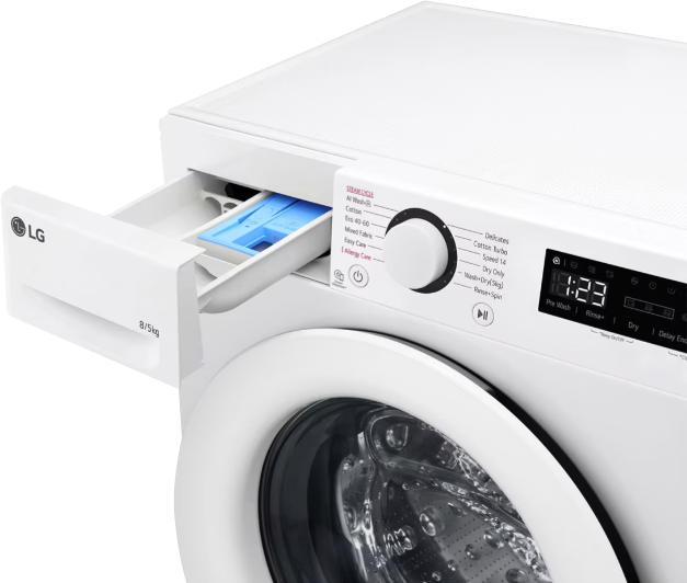 Jos tarvitset yhdistettyä pesu- ja kuivausrumpua, jonka syvyys on pienempi kuin tavalliseen yhdistettyyn pesu- ja kuivausrumpuun (noin 10 cm), sinun on tarkasteltava LG: n yhdistetyn pesu- ja kuivausrummun versiota, jonka syvyys on vain 47,5 cm (ilman ovea) ja kapasiteetti 8 kg pesuun ja 5 kg kuivattamiseen. Vain yhdellä koneella, joka huolehtii sekä pesusta että kuivauksesta, säästät luonnollisesti sekä tilaa että rahaa.