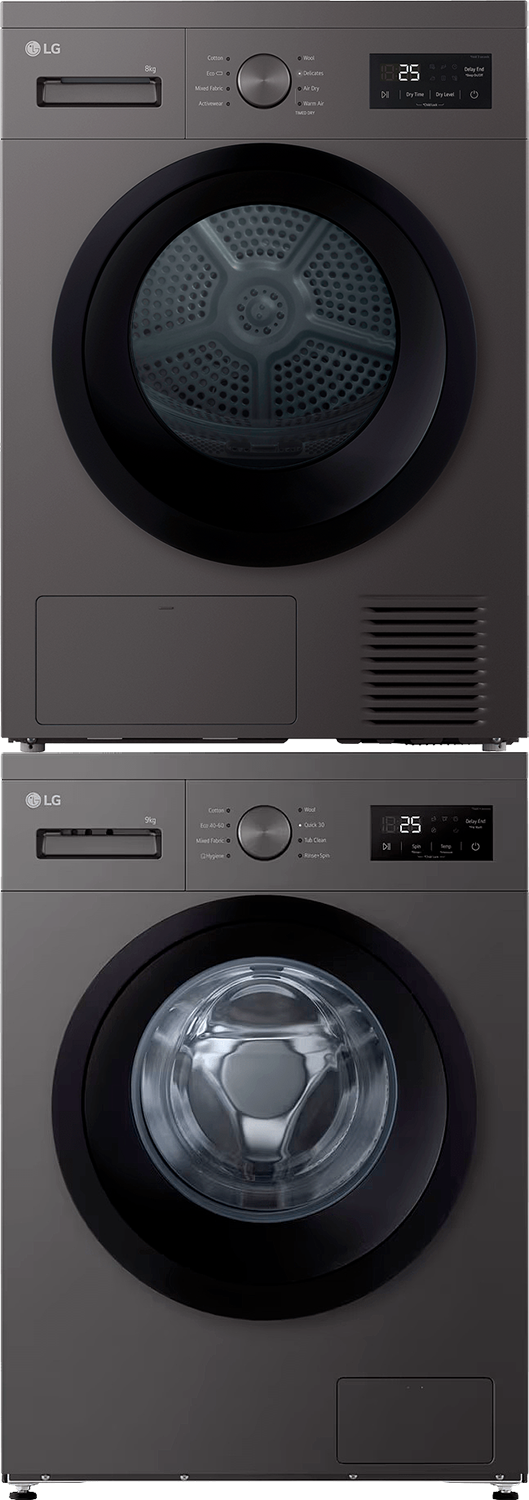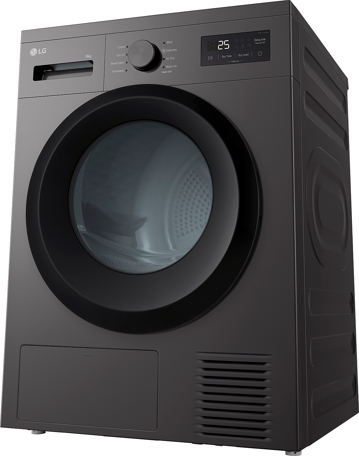 LG RHA1008NDK kuivausrumpu, joka on saatavilla tyylikkäänä mustana, tarjoaa 8 kg:n kapasiteetin. Lämpöpumpputekniikka mahdollistaa hellävaraisen ja energiaystävällisen kuivaamisen, säilyttäen vaatteiden laadun myös matalissa lämpötiloissa.
