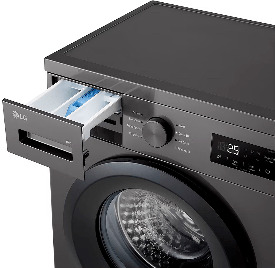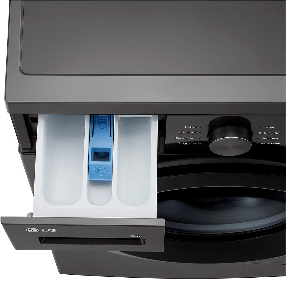 LG F4A1009NDK pyykinpesukone, joka on saatavilla tyylikkäänä mustana, tarjoaa 9 kg:n kapasiteetin ja 56 litran rummun tilavuuden. Tämä mahdollistaa suuren määrän vaatteiden pesemisen kerralla, mikä tekee arjen pyykkihuollosta vaivatonta. Suuri täyttökapasiteetti ja -aukko helpottavat koneen täyttämistä ja tyhjentämistä.