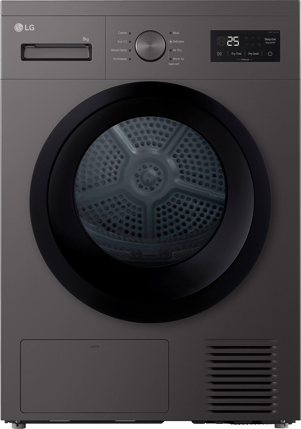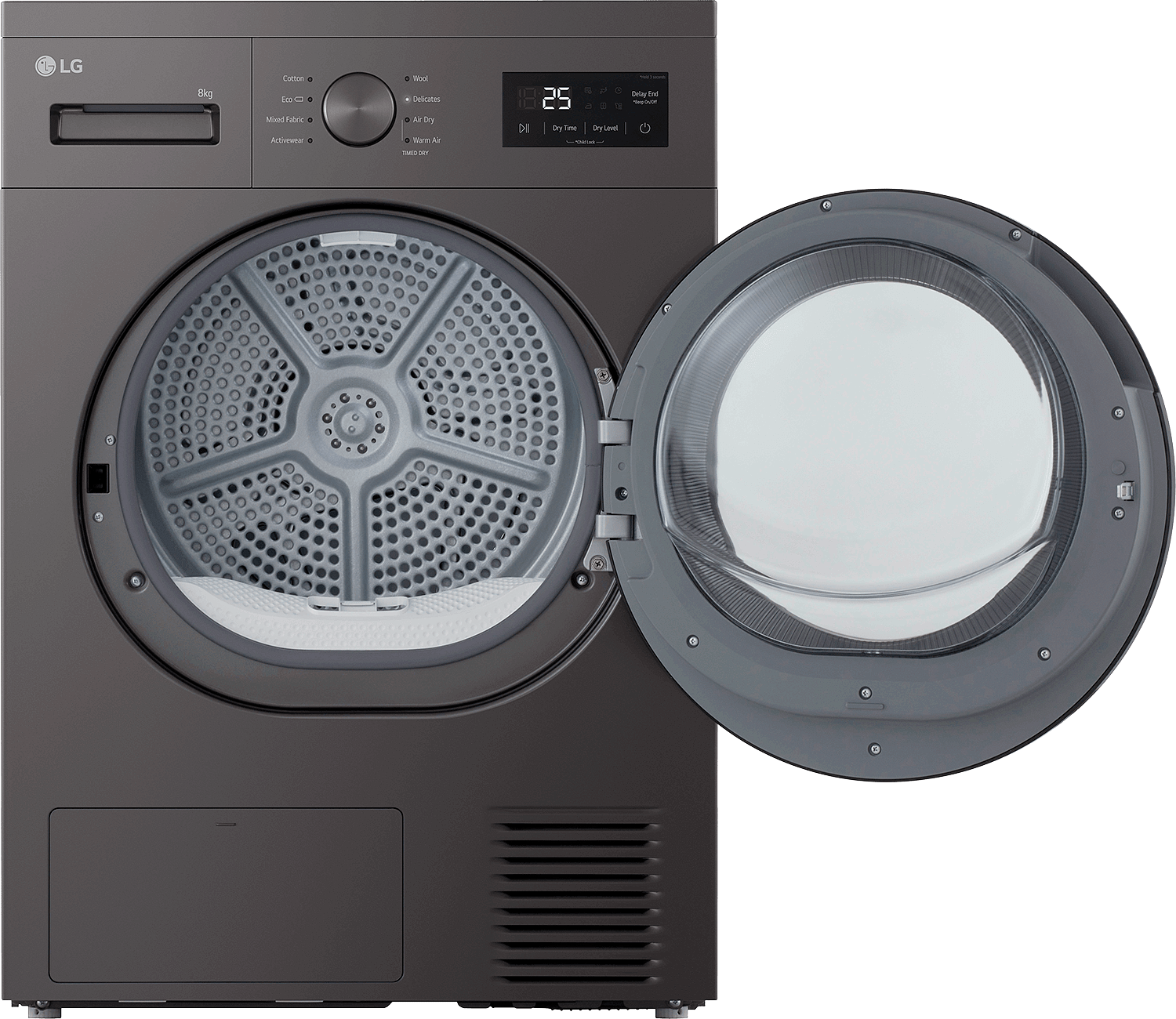 Kuivausohjelmat: Puuvilla, Eco, Tekokuidut, Urheilu, Villa, Hienopyykki, Ilmakuivaus, Lämmin aikakuivaus