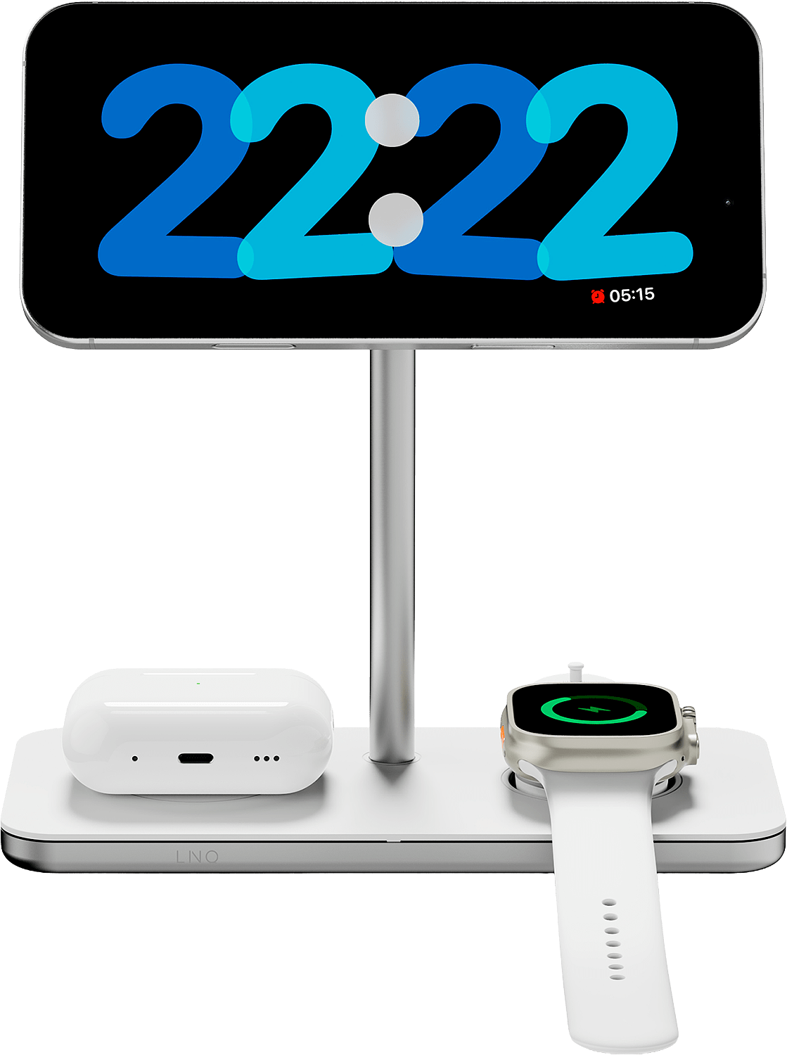 LINQ 3in1 MagSafe-latausteline on täydellinen valinta sinulle, joka haluat ladata iPhonesi, Apple Watchisi ja AirPodisi samanaikaisesti - tehokkaasti, tyylikkäästi ja turvallisesti. Minimalistinen muotoilu, laadukkaat materiaalit ja uusin langaton lataustekniikka tekevät tästä laturista huippuluokan lisävarusteen yöpöydälle tai työpisteelle.