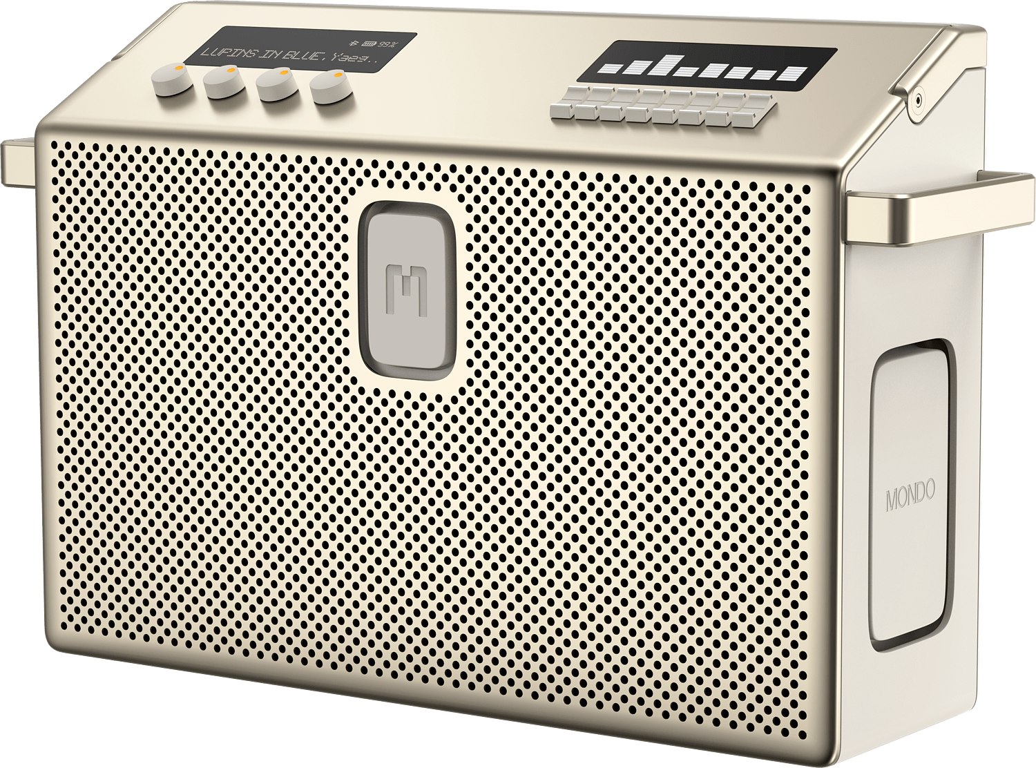 MONDO Bluetooth kaiuttimissa on 6 aktiivista kaiutinelementtiä, jotka tuottavat 96W tehon ja 3 passiivista bassoa. 2 aktiivista kaiutinelementtiä bassoa ja keskiääniä varten, 2 aktiivista kaiutinelementtiä keskiäänille, 2 aktiivista kaiutinta korkeille sävelille ja 3 passiivista bassoa erittäin raskaalle bassolle.