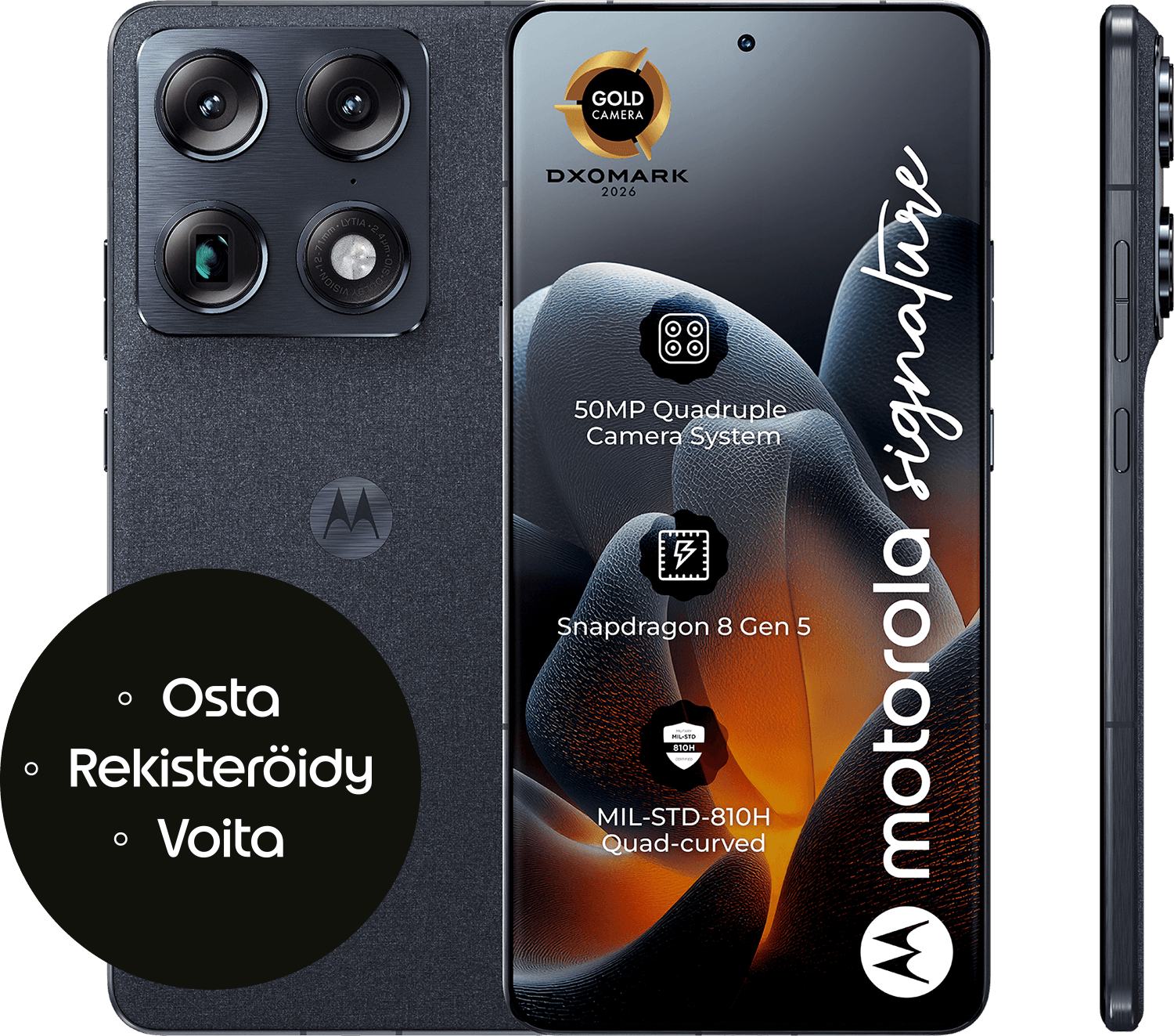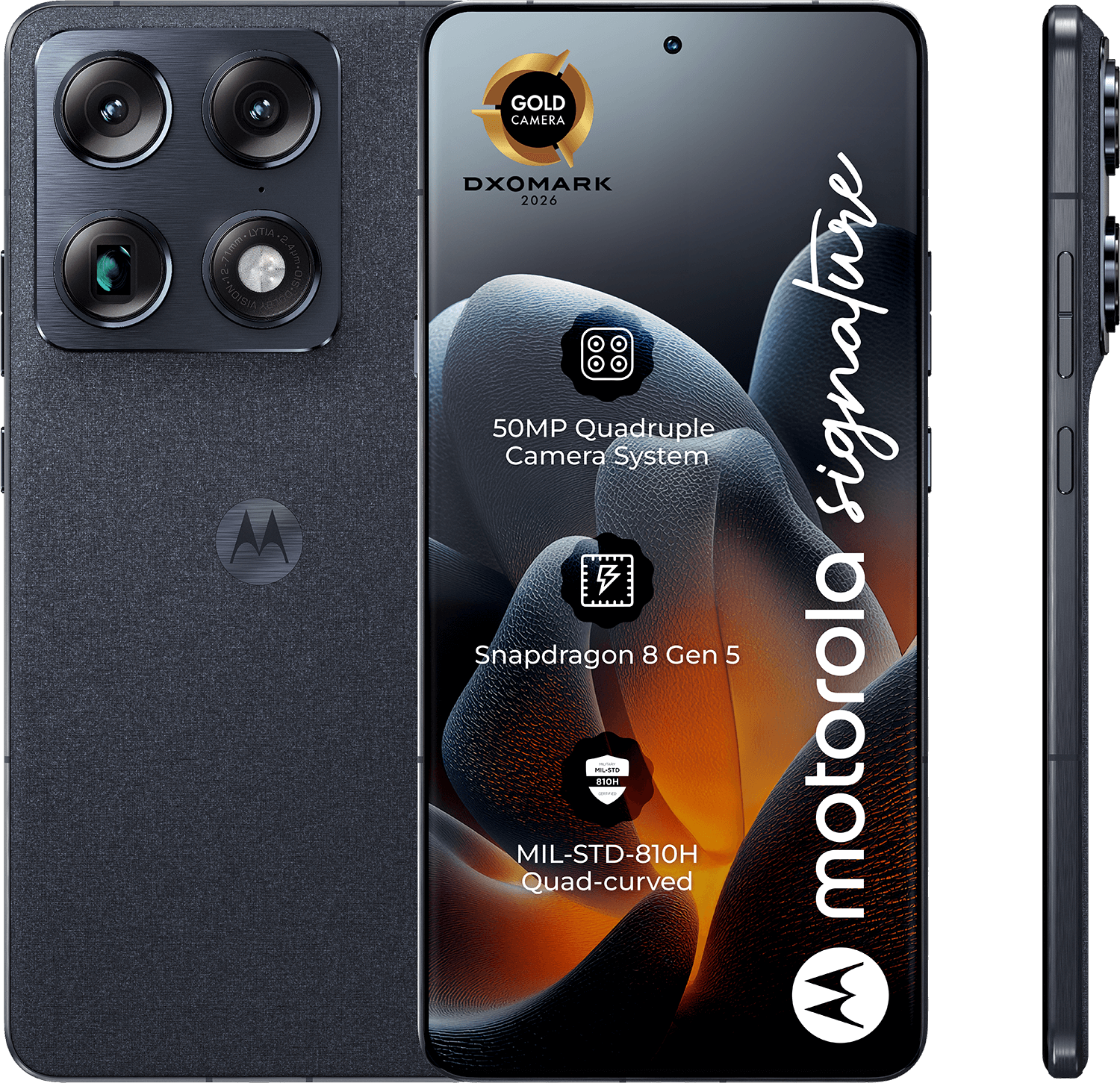 Motorola Signature on suunniteltu kestämään arjen ja vaativan käytön haasteet. IP69/IP68-luokituksen mukainen veden- ja pölynkestävyys, MIL-STD-810H -testattu rakenne sekä lentokonealumiinista valmistettu runko takaavat luotettavuuden kaikissa olosuhteissa. Tyylikäs viimeistely, kuten pellavaa muistuttava takapinta, viimeistelee premium-vaikutelman.