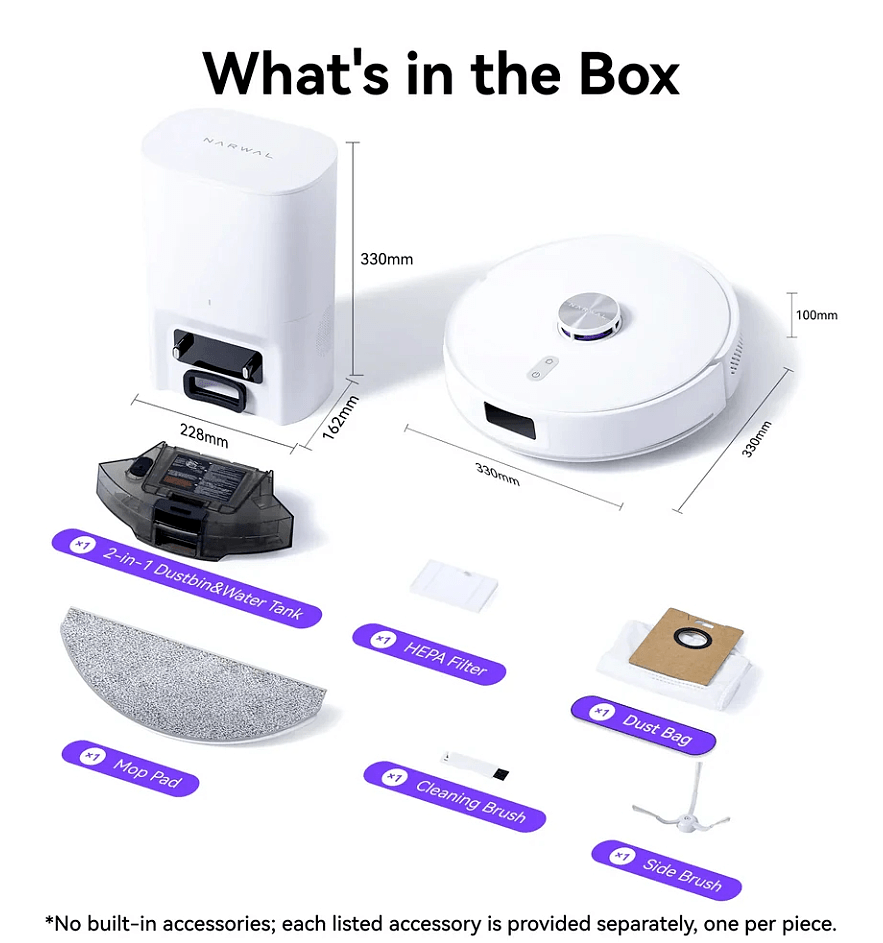 Narwal Freo S on robotti-imuri käyttäjälle, joka haluaa puhtaan kodin ilman jatkuvaa huoltoa. 8000 Pa imuteho poistaa hiukset, murut ja lemmikkien jätökset helposti. Se sopii erityisesti koteihin, joissa on lapsia, lemmikkejä tai paljon liikennettä, ja joissa puhtaus halutaan varmistaa vaivattomasti joka päivä.