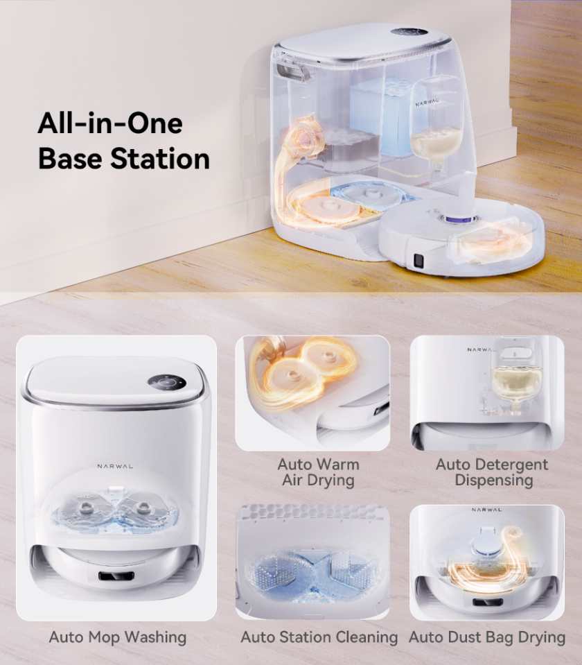 Mukana tuleva all-in-one-tukiasema pesee, kuivaa ja täyttää mopit automaattisesti - ja puhdistaa itsensä. Tämä tekee Freo X Ultrasta lähes täysin huoltovapaan laitteen, joka hoitaa siivouksen alusta loppuun ilman käyttäjän väliintuloa.