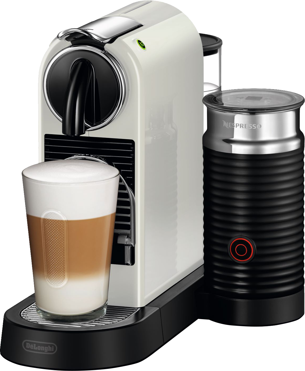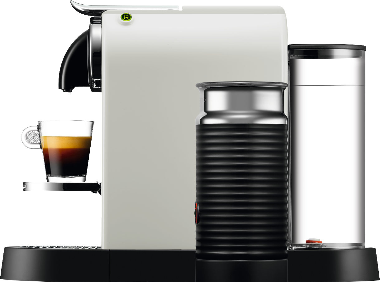 Kaupunkilaiseen elämäntyyliin suunniteltu Nespresso CitiZ -kapselikeitin kuumenee käyttövalmiiksi nopeasti ja uuttaa valitsemasi Nespresso-kahvin vain yhden napin painalluksella. Tämä kahvikone jatkaa Nespresso-kahvinjuojien ja muotoilun ystävien toiveiden täyttämistä, lisäten ripauksen tyylikkyyttä kahvihetkiin ympäri maailman. Kompakti muotoilu sopii kaikkiin keittiöihin, ja Espresso ja Lungo kahvit valmistuvat helposti nappia painamalla. Integroidulla Aeroccino-maidonvaahdottimella käsittelet maidon erikoiskahvijuomiisi, kuten herkullisiin Latte- tai Cappuccino-kahveihin.