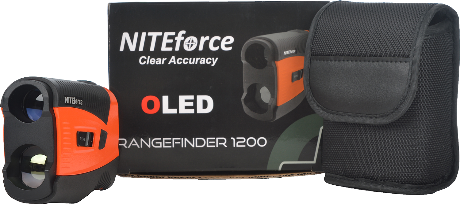 Golfkentällä NITEforce OLED Rangefinder 1200 tarjoaa lisäapua slope-toiminnon avulla, joka aktivoidaan erillisestä napista. Yardi/metri-asetukset vaihtuvat nopeasti laitteen sivupainikkeella. Virtapainikkeen lyhyt painallus mittaa etäisyyden, ja pitkä painallus käynnistää jatkuvan etäisyysskannauksen.