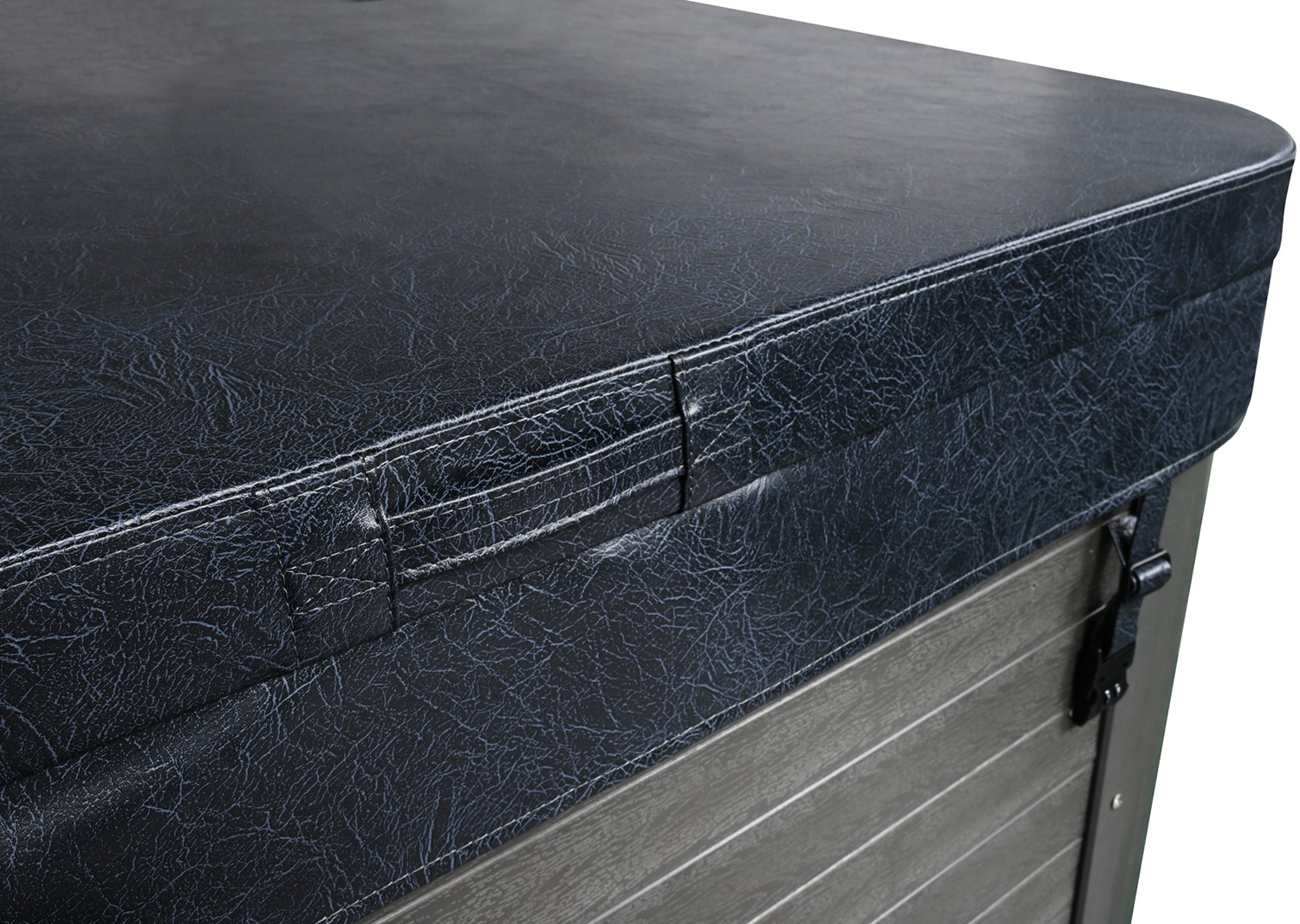 Marine-vinyylipäällinen kestää UV-säteilyä, kosteutta, pakkasta ja vaihtelevia lämpötiloja ympäri vuoden. Kannen rakenne on suunniteltu siten, että keskiosasta reunoille laskeva profiili ohjaa sadeveden pois tehokkaasti, estäen veden kertymisen ja lisäten käyttömukavuutta. Galvanoitu C-teräsprofiili taitoskohdassa tuo lisää kestävyyttä ja pitää kannen ryhdikkäänä pitkäaikaisessa käytössä.