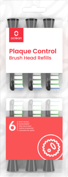 Oclean Plaque Control -vaihtoharjat mahdollistavat paremman plakin poiston ja luonnollisen valkoisen hymyn. Harjan takana on kielenpuhdistaja. Vaihtoharjat ovat W:n muotoisia, mikä tekee siitä helpon ja miellyttävän käyttää. Harjassa on FDA:n hyväksymät turvalliset materiaalit.