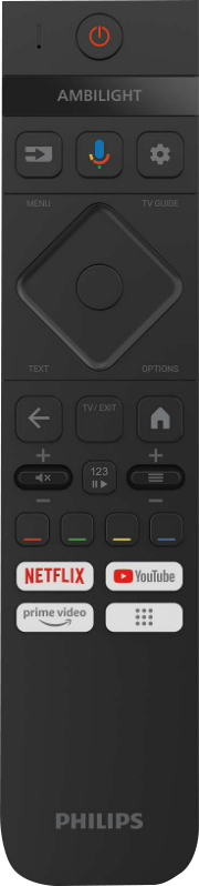 Esiasennetut sovellukset: Google Play Elokuvat, Google-haku, YouTube, Netflix, Apple TV, Amazon Prime Video, Disney+, Fitness-sovellus, YouTube Music, Ambilight Aurora